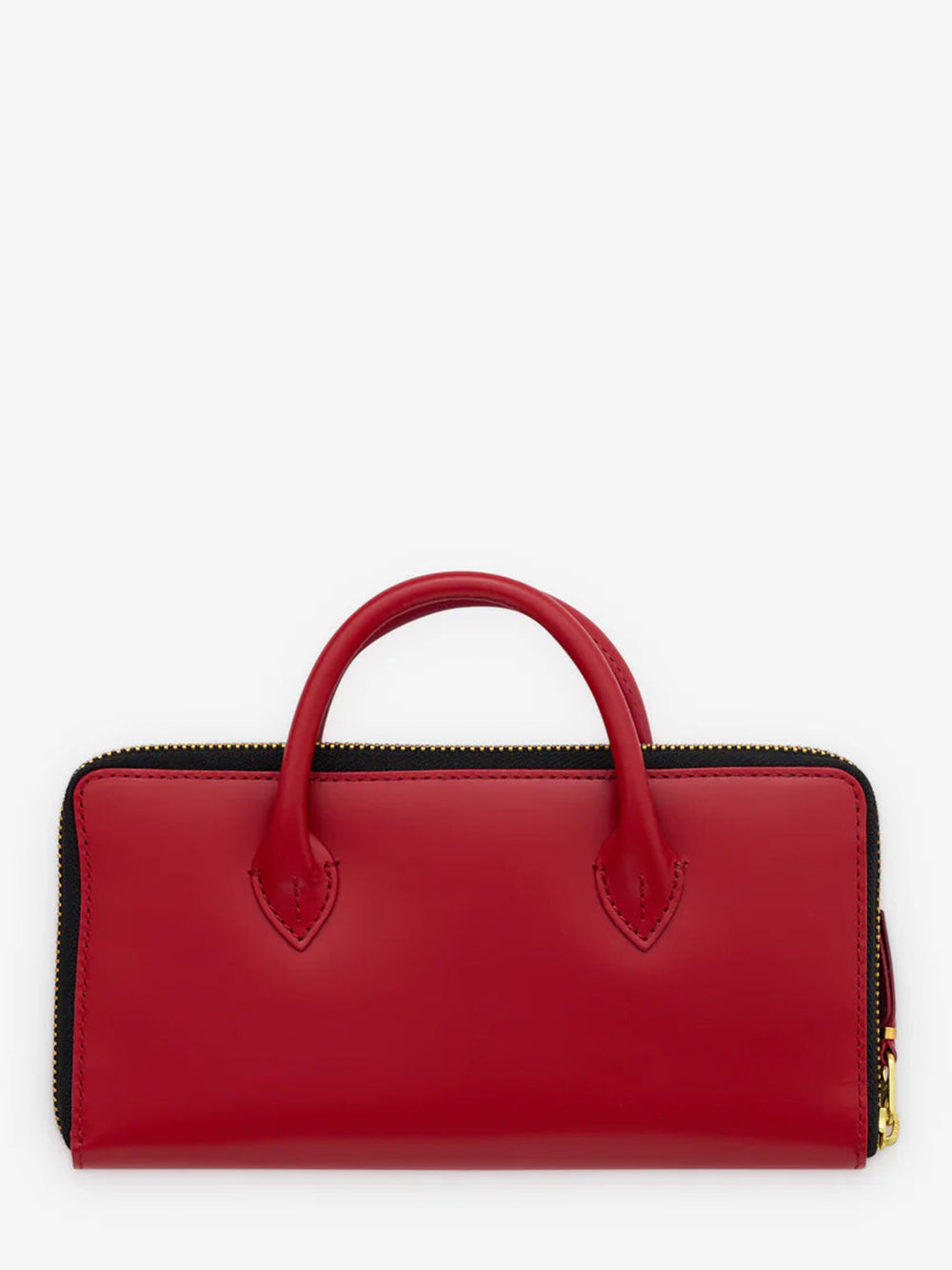 The Wallet With Handles from COMME des GARÇONS WALLET embodies a refined minimalist aesthetic with a contemporary edge. Designed with integrated handles, it offers a distinctive silhouette while maintaining everyday practicality. A secure zip closure ensures safe storage, complemented by a well-organized interior featuring a bill compartment, a zip-close coin pouch, and card slots. This piece is an ideal accessory for those who appreciate understated design with functional sophistication.