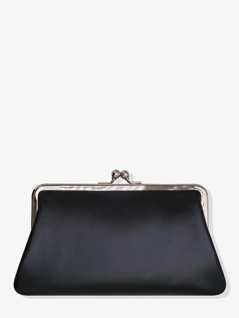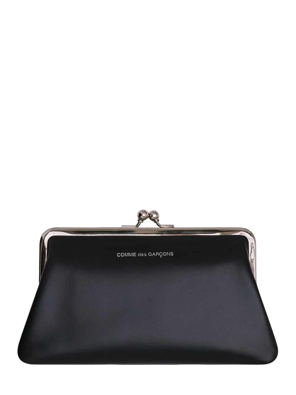 The Wallet Kiss Clasp from COMME des GARÇONS WALLET reinterprets a timeless classic through a refined silver-tone metal frame and signature kiss clasp fastening. An additional inner clasp provides enhanced security and thoughtful organization. The sculptural silver frame adds a subtle statement while maintaining a clean, minimalist aesthetic. This wallet is a sophisticated accessory for those who appreciate functional design with a distinctive fashion sensibility.