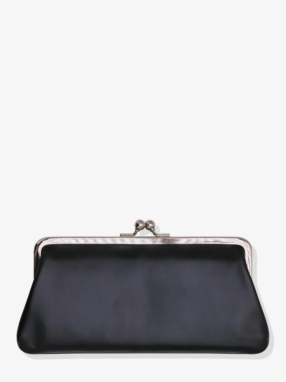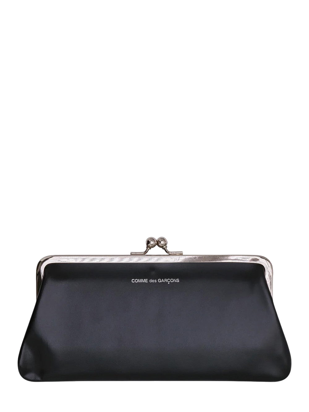 The Wallet Kiss Clasp from COMME des GARÇONS WALLET reinterprets a timeless classic through a refined silver-tone metal frame and signature kiss clasp fastening. An additional inner clasp provides enhanced security and thoughtful organization. The sculptural silver frame adds a subtle statement while maintaining a clean, minimalist aesthetic. This wallet is a sophisticated accessory for those who appreciate functional design with a distinctive fashion sensibility.
