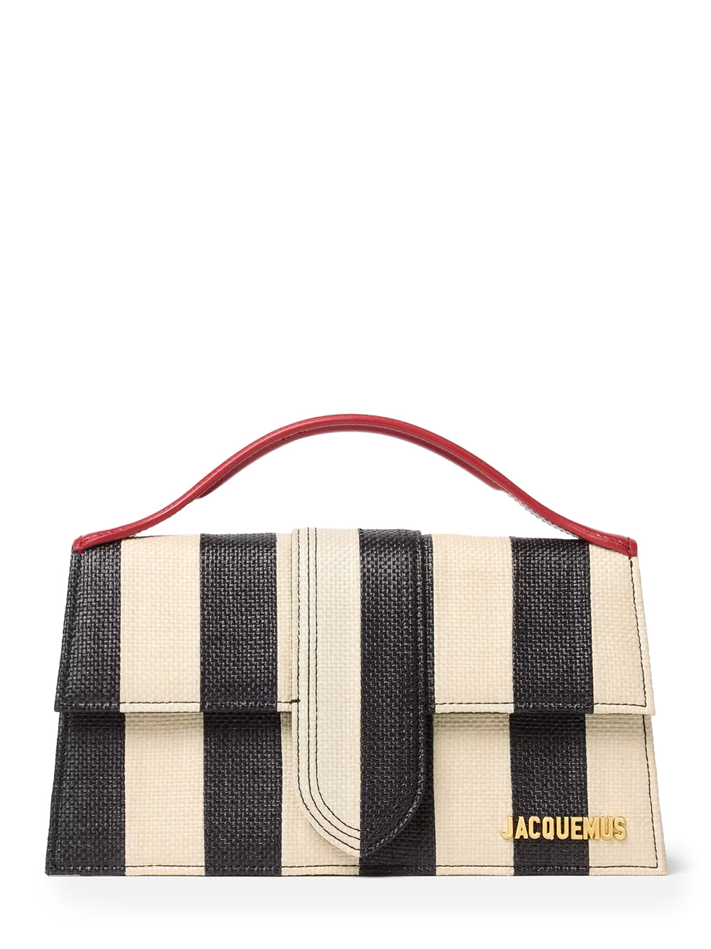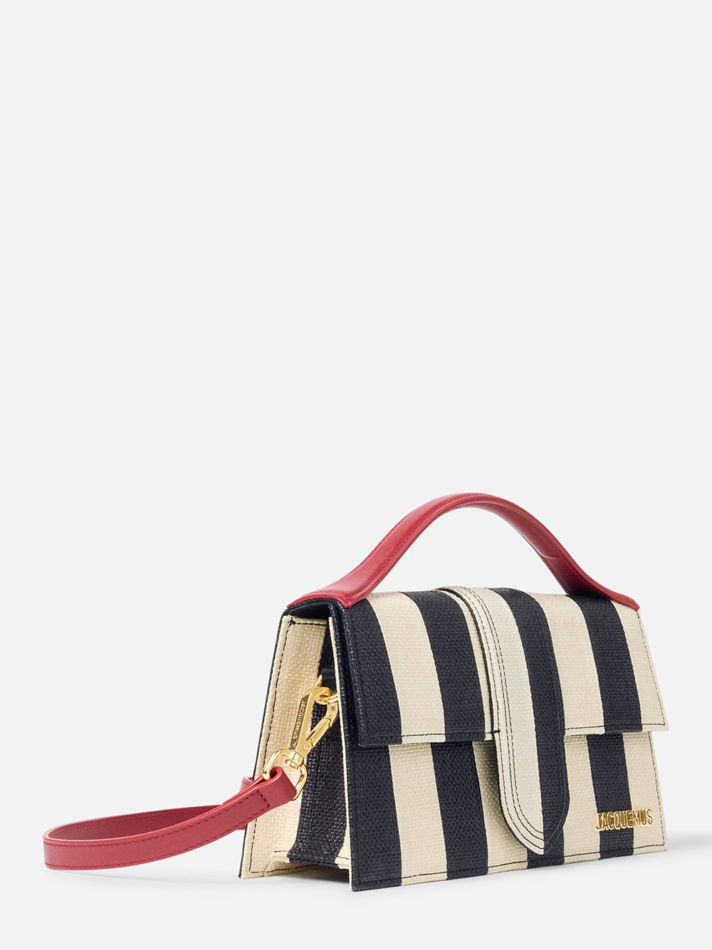 กระเป๋าถือดีไซน์ไอคอนิคจากแบรนด์ Jacquemus ดีเทลฝาพับกระเป๋าแม่เหล็กเปิดปิดพร้อมโลโก้แบรนด์ฮาร์ดแวร์อะไหล่โทนสีเงิน หูหิ้วกระเป๋า สายกระเป๋ายาวปรับระดับได้ และซับในกระเป๋า แบรนด์แฟชั่นจากฝรั่งเศสที่โดดเด่นด้วยดีไซน์การออกแบบมินิมอลสุดเรียบง่ายแต่แฝงไว้ด้วยลูกเล่นการตัดเย็บสุดเนี๊ยบ มาพร้อมสีสดใสชวนให้นึกถึงหน้าร้อนทางตอนใต้ของฝรั่งเศส