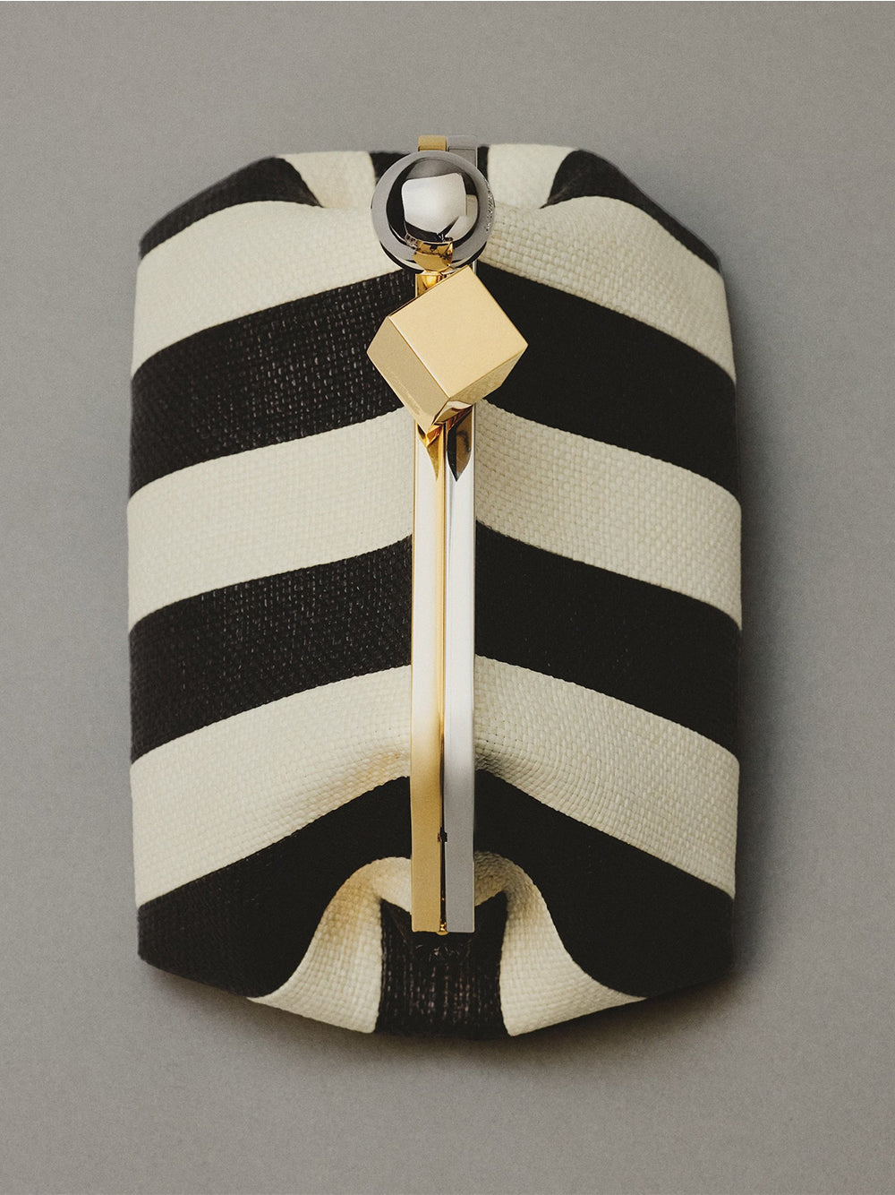 - กระเป๋าทรงพาวช์ขนาดเล็ก ผลิตจากผ้าราฟเฟียลายทางแบบแพตช์เวิร์ก