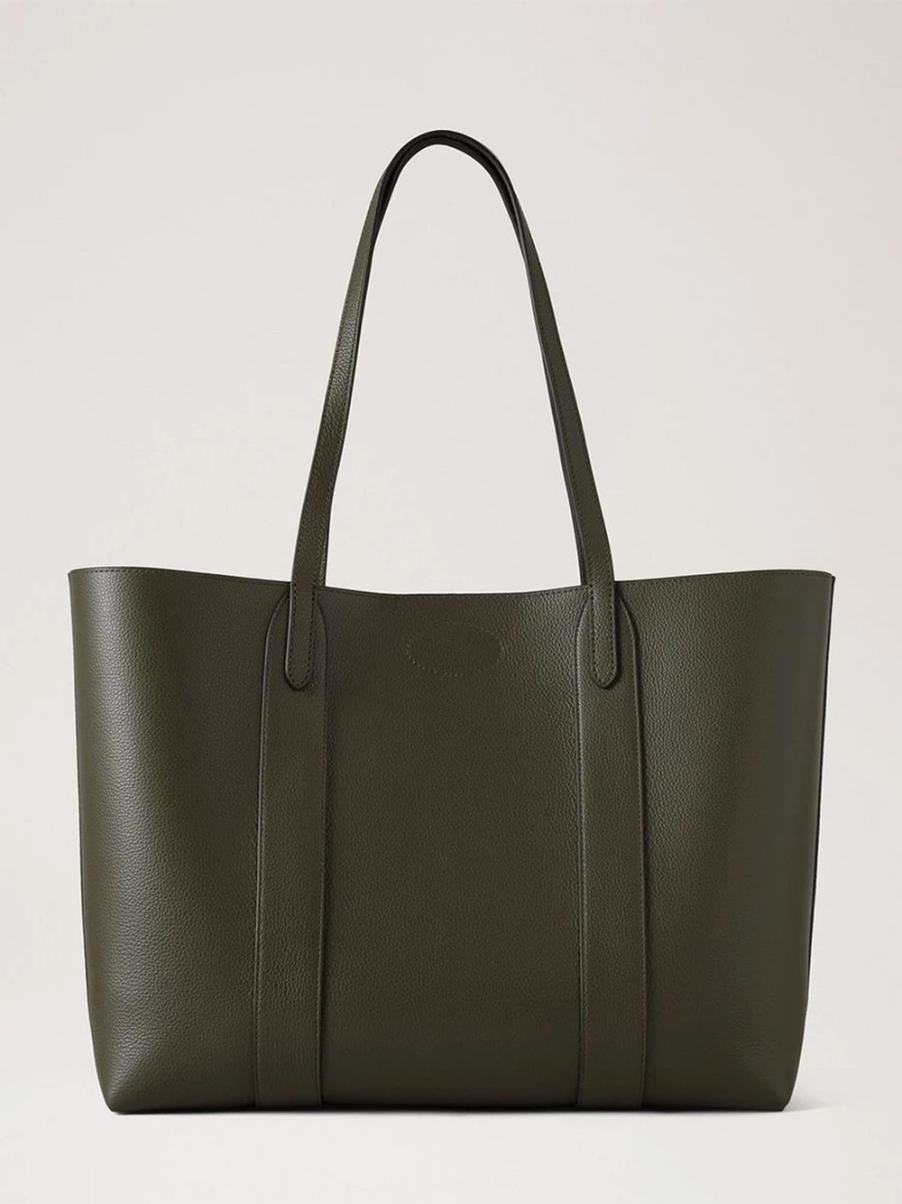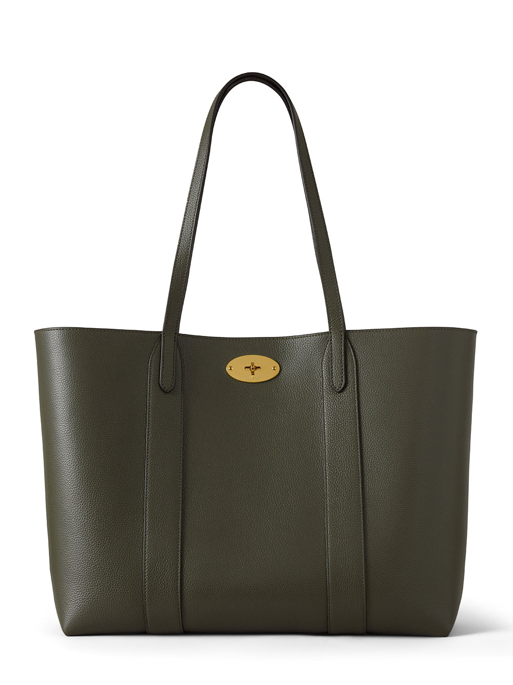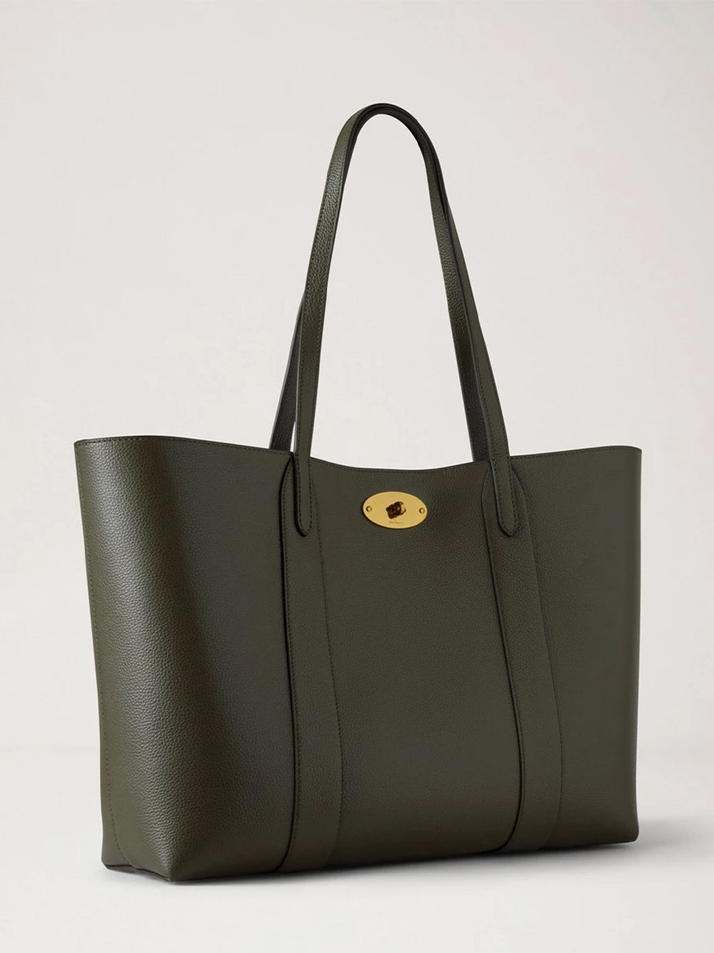 กระเป๋าโท้ทจากแบรนด์ Mulberry ดีเทลกระเป๋าทรงสี่เหลี่ยม ปากกระเป๋าเปิดพร้อมกิมมิคสลักโลโก้แบรนด์บริเวณตัวล็อคกระเป๋าแบบหมุน (Postman's Lock) คลาสสิคซิกเนเจอร์ประจำแบรนด์ ฮาร์ดแวร์โลหะโทนสีทองช่วยเพิ่มเซนส์ความหรูหราให้กับไอเทมชิ้นนี้ กระเป๋าขนาดเล็กด้านในและช่องกระเป๋าขนาดใหญ่ มาพร้อมหูหิ้วกระเป๋าสะพายไหล่ ไซซ์กระเป๋าที่ถูกออกแบบให้ตอบโจทย์ผู้หญิงผู้มองหาไอเทมสำหรับใส่สัมภาระจำนวนมาก ไอเทมสำหรับเอเวอริเดย์ลุค