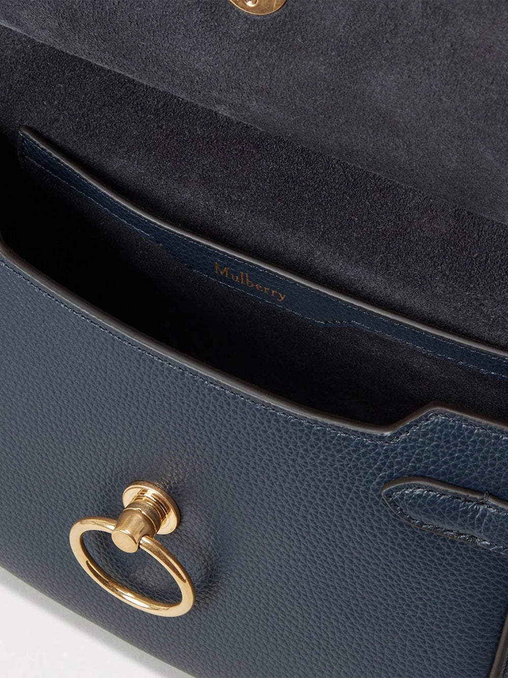 กระเป๋าสะพายหนังสีดำสุดคลาสสิคจากแบรนด์ Mulberry ดีไซน์กระเป๋ารูปทรงคล้ายอานม้า ฝาพับกระเป๋าเปิดที่โดดเด่นด้วยการใช้ตัวล็อคกระเป๋ารูปทรงเลขาคณิต Rider's Lock ที่พัฒนามาจากตัวล็อคคลาสสิค Postman's Lock ฮาร์ดแวร์โลหะสีทอง มาพร้อมสายสะพายแบบปรับระดับหรือสามารถถอดออกได้ แบรนด์เครื่องหนัง Luxury สัญชาติอังกฤษที่โดดเด่นด้วยการออกแบบร่วมสมัยแต่ยังคงไว้ซึ่งกลิ่นอายสไตล์ British Heritage