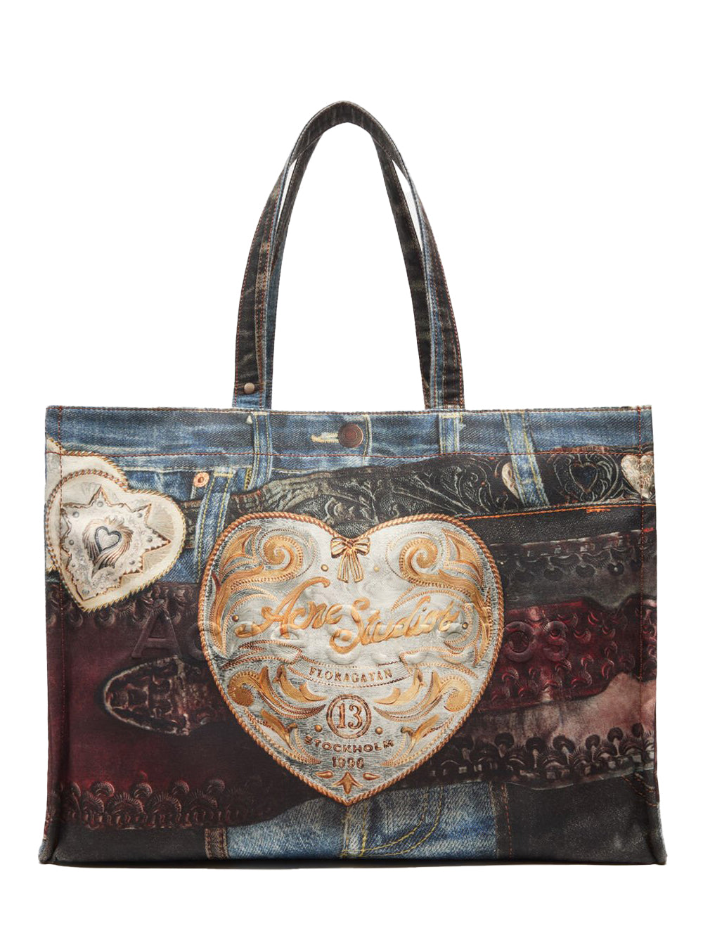 กระเป๋าโท้ทจากแบรนด์ Acne Studios โดดเด่นด้วยลายพิมพ์ Trompe-l'œil เดนิมเอฟเฟกต์ตามฤดูกาล พิมพ์ทั่วทั้งใบลงบนผ้าแคนวาสคอตตอน ตกแต่งด้วยโลโก้ Acne Studios แบบปั๊มนูนบริเวณด้านหน้า เสริมฟังก์ชันการใช้งานด้วยช่องซิปขนาดเล็กด้านใน พร้อมหูหิ้วและสายสะพายไหล่ ไอเทมที่มาพร้อมฟังก์ชั่นการใช้งานครบครัน ตอบโจทย์ผู้มองหาไอเทมสำหรับวันแคชชวลสุดชิลหรือสามารถใส่แล็ปท็อป ขวดน้ำและสัมภาระหลากหลายชิ้นสำหรับวันเข้าออฟฟิศ