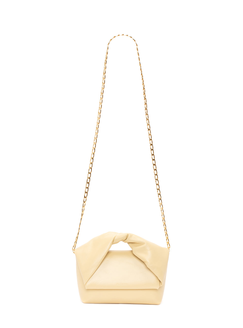 กระเป๋าสะพาย โดดเด่นตรงดีไซน์หูหิ้วที่บิดนุ่มเป็นเกลียว มาพร้อมสายโซ่สีทองที่สามารถถอด ด้านนอกปั้มนูนโลโก้ ถูกออกแบบให้เปิดปิดด้วยแม่เหล็ก มีซับในด้านใน สามารถถือเป็นคลัทช์ สะพายไหล่ และสะพายแล่งได้