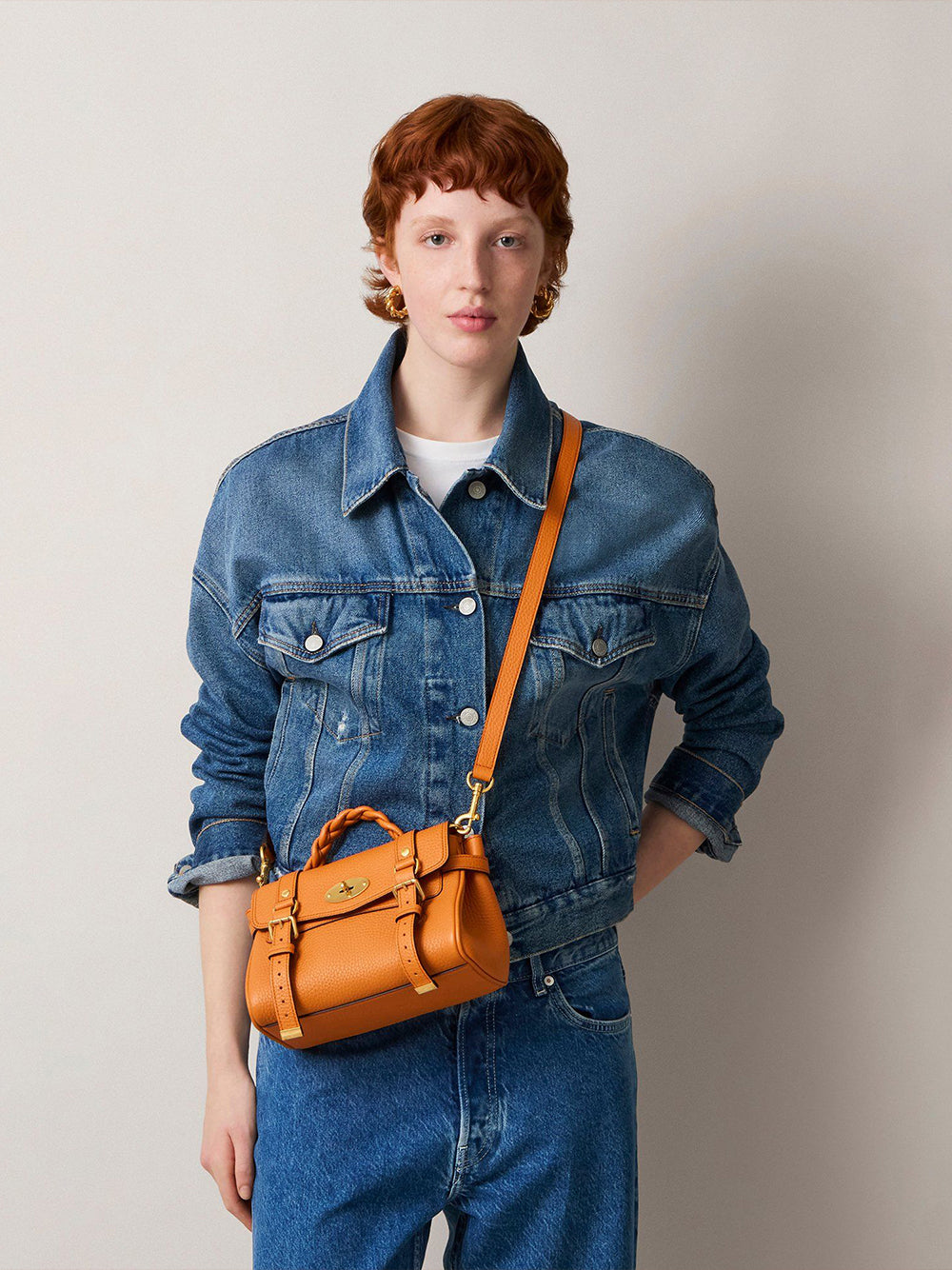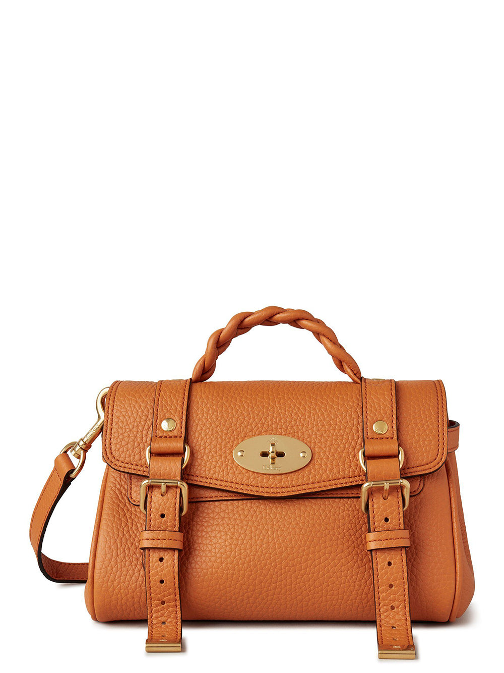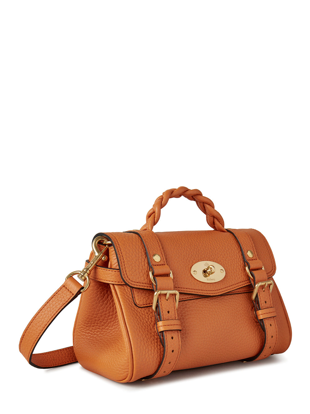 The Mini Alexa effortlessly combines elements from two iconic Mulberry styles: the Bayswater bag and the Elkington briefcase. The result is a miniature version of an understatedly cool satchel complete with the signature Mulberry Postman’s Lock and belt buckle and strap hardware. Carry by the plaited leather top handle or wear with the adjustable cross body strap.