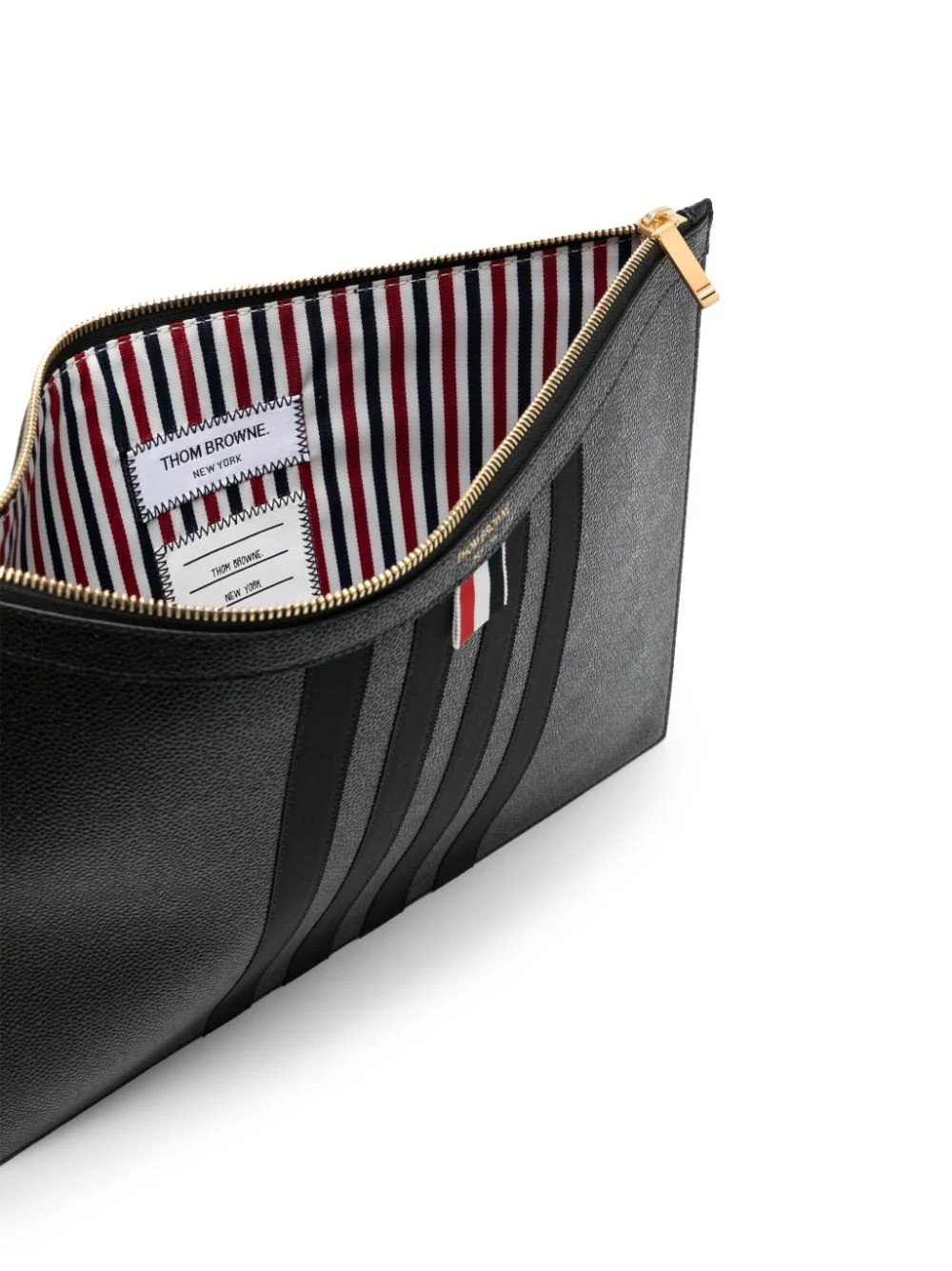 Thom Browne Medium Document Holder W/ Gros Grain 4 Bar In Pebble Grain Leather Black