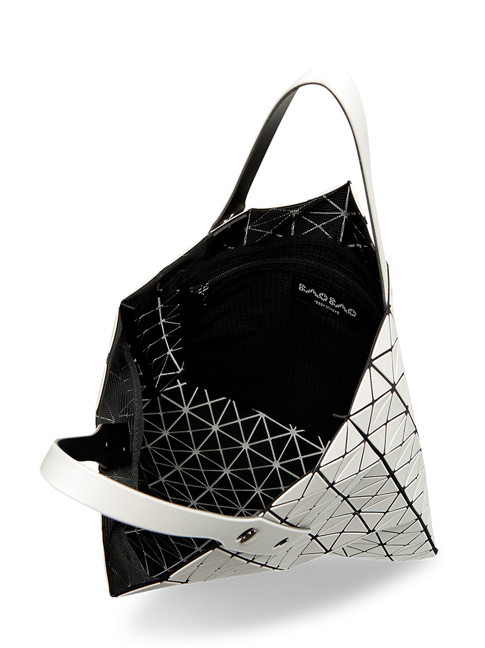 กระเป๋าโท้ทจากแบรนด์ BAO BAO ISSEY MIYAKE ดีไซน์คลาสสิกทรงสี่เหลี่ยม มาพร้อมลวดลายสามเหลี่ยมที่มีมิติด้านนอก หูหิ้วกระเป๋าจับแบบคู่ที่สามารถปรับระดับได้ ภายในมีกระเป๋าซิปสำหรับจัดเก็บของมีค่า เช่น กระเป๋าสตางค์และกุญแจได้อย่างเป็นระเบียบ ตัวกระเป๋าสามารถใส่เอกสารขนาด A4 และแล็ปท็อปขนาด 15 นิ้วในแนวตั้ง จึงเหมาะสำหรับการใช้งานได้หลากหลายโอกาส