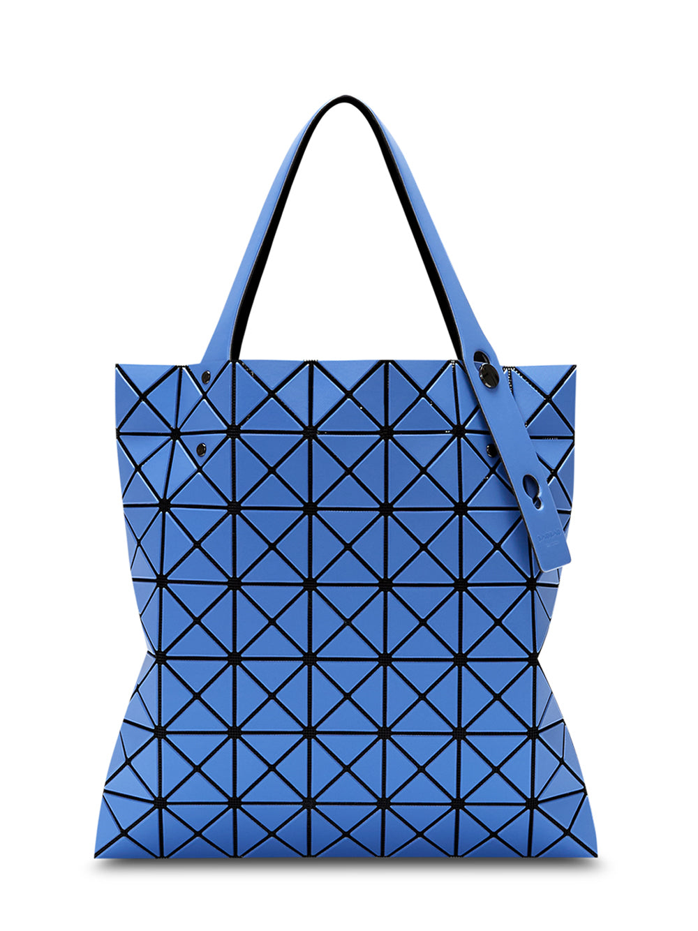 กระเป๋าโท้ทจากแบรนด์ BAO BAO ISSEY MIYAKE ดีไซน์คลาสสิกทรงสี่เหลี่ยม มาพร้อมลวดลายสามเหลี่ยมที่มีมิติด้านนอก มีช่องกระเป๋าด้านใน และหูหิ้วกระเป๋าจับแบบคู่ที่สามารถปรับระดับได้