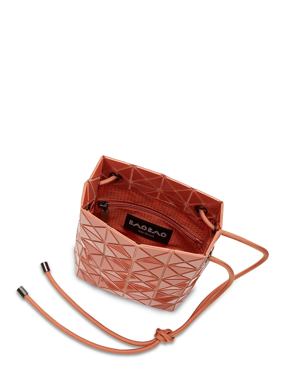 กระเป๋าสะพายไหล่จากแบรนด์ BAO BAO ISSEY MIYAKE ดีไซน์กระเป๋าบัคเก็ตทรงถัง โดดเด่นด้วยลวดลายสามเหลี่ยมที่มีมิติด้านนอก ดีเทลปากกระเป๋าเปิดพร้อมเชือกรูดเปิดปิดกระเป๋า ช่องกระเป๋าด้านใน และสายกระเป๋ายาวปรับระดับความยาวได้ สามารถสไตล์ลิ่งเป็นกระเป๋าสะพายข้างหรือกระเป๋าสะพายไหล่