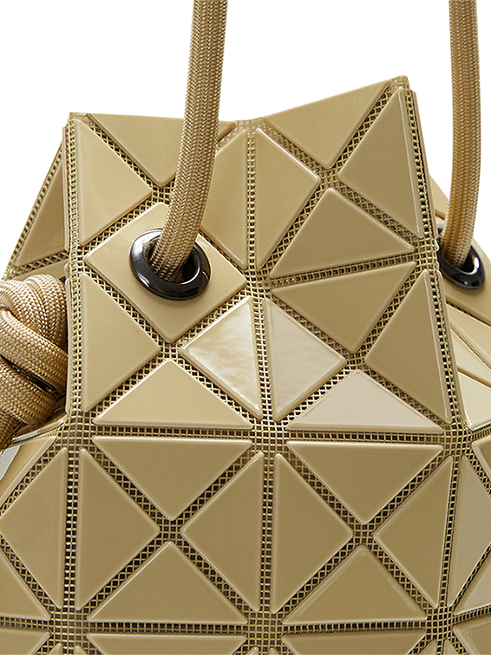 กระเป๋าสะพายไหล่จากแบรนด์ BAO BAO ISSEY MIYAKE ดีไซน์กระเป๋าบัคเก็ตทรงถัง โดดเด่นด้วยลวดลายสามเหลี่ยมที่มีมิติด้านนอก ดีเทลปากกระเป๋าเปิดพร้อมเชือกรูดเปิดปิดกระเป๋า ช่องกระเป๋าด้านใน และสายกระเป๋ายาวปรับระดับความยาวได้ สามารถสไตล์ลิ่งเป็นกระเป๋าสะพายข้างหรือกระเป๋าสะพายไหล่