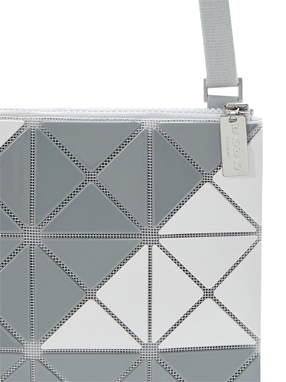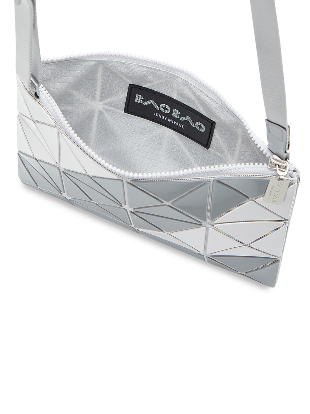 กระเป๋าสะพายข้างจากแบรนด์ BAO BAO ISSEY MIYAKE ดีไซน์คลาสสิกทรงสี่เหลี่ยม มาพร้อมลวดลายสามเหลี่ยมที่มีมิติด้านนอก กระเป๋าสะพายไหล่รุ่นนี้มาจากคอลเลกชันที่นำลวดลายใกล้ตัวอย่างป้ายจราจรมาถ่ายทอดในรูปแบบกราฟิกอย่างโดดเด่น ขนาดพอเหมาะสำหรับใส่ของสำคัญ เช่น สมาร์ทโฟนและกระเป๋าสตางค์ขนาดเล็ก