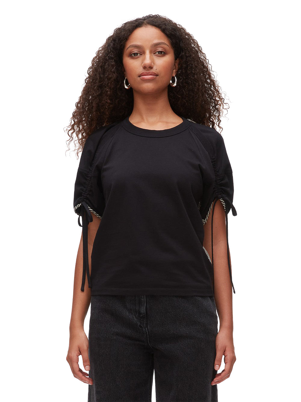 Ruched T-Shirt with Poplin Back (Black-Black Multi)