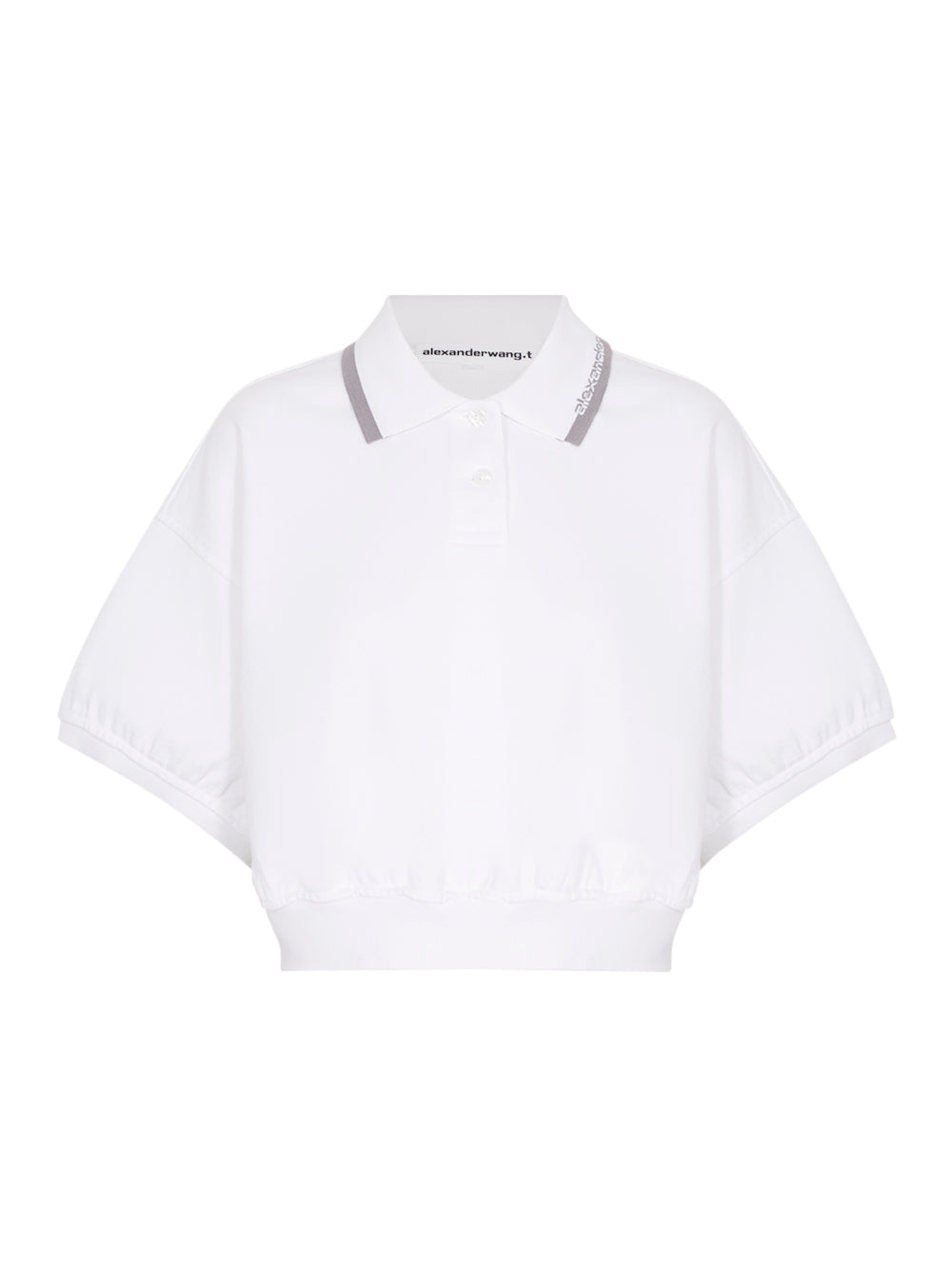 Alexander Wang แบรนด์ของนักออกแบบอัจฉริยะแห่งวงการแฟชั่นชาวอเมริกันที่สร้างชื่อให้ตัวเองในวงการก่อนก่อตั้งแบรนด์ของตัวเองเมื่อปี ค.ศ. 2005 เสื้อโปโลผ้าเจอร์ซี่ญี่ปุ่นเนื้อบางแบบกระดาษ ในทรงครอปและซิลูเอตต์ผ่อนคลาย มาพร้อมปกถักดีไซน์พิเศษประดับโลโก้ตัดสี และแผงกระดุมบริเวณคอ เพิ่มวอลลุ่มช่วงตัวและแขนก่อนจับรูปรัดด้วยขอบริบให้ลุคโค้งสวยงาม เสื้อไม่บุซับในเพื่อสัมผัสที่เบาและสบายยิ่งขึ้น