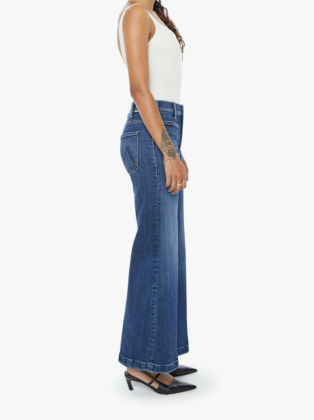 กางเกงเดนิมขายาวเอวสูงจากแบรนด์ MOTHER ทรงขากว้างที่ได้แรงบันดาลใจจากยุค 70s มาพร้อมเอวสูง ซิปด้านหน้า ความยาวขา 29 นิ้ว และปลายขาแบบตัดเรียบ ผลิตจากผ้ายีนส์ผสมสแตรช โดยสี Heirloom เป็นสีน้ำเงินเข้มพร้อมดีเทลเฟดและรอย whiskering อย่างเป็นธรรมชาติ ชิ้นแฟชั่นที่ได้แรงบันดาลใจจากไลฟ์สไตล์สุดรีแล็กซ์ตามแบบฉบับชาวแอลเอ (Los Angeles) สามารถหยิบนำมิกซ์แอนด์แมทช์เข้ากับเสื้อพลูโอเวอร์แขนเสื้อยาว หรือเสื้อยืดแขนเสื้อสั้นสำหรับลุคแคชชวลในวันสบาย
