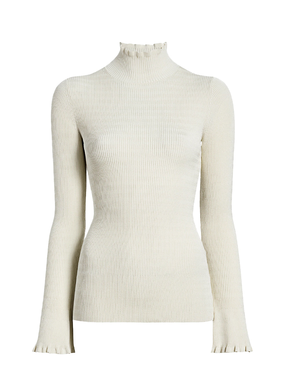 The Phyllis Turtleneck in Geo Knits is cut for a slim fit. Features long sleeves with small flares at the sleeve ends.