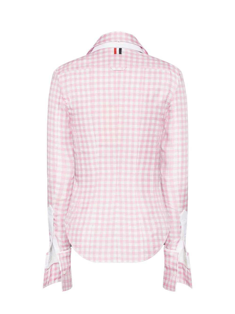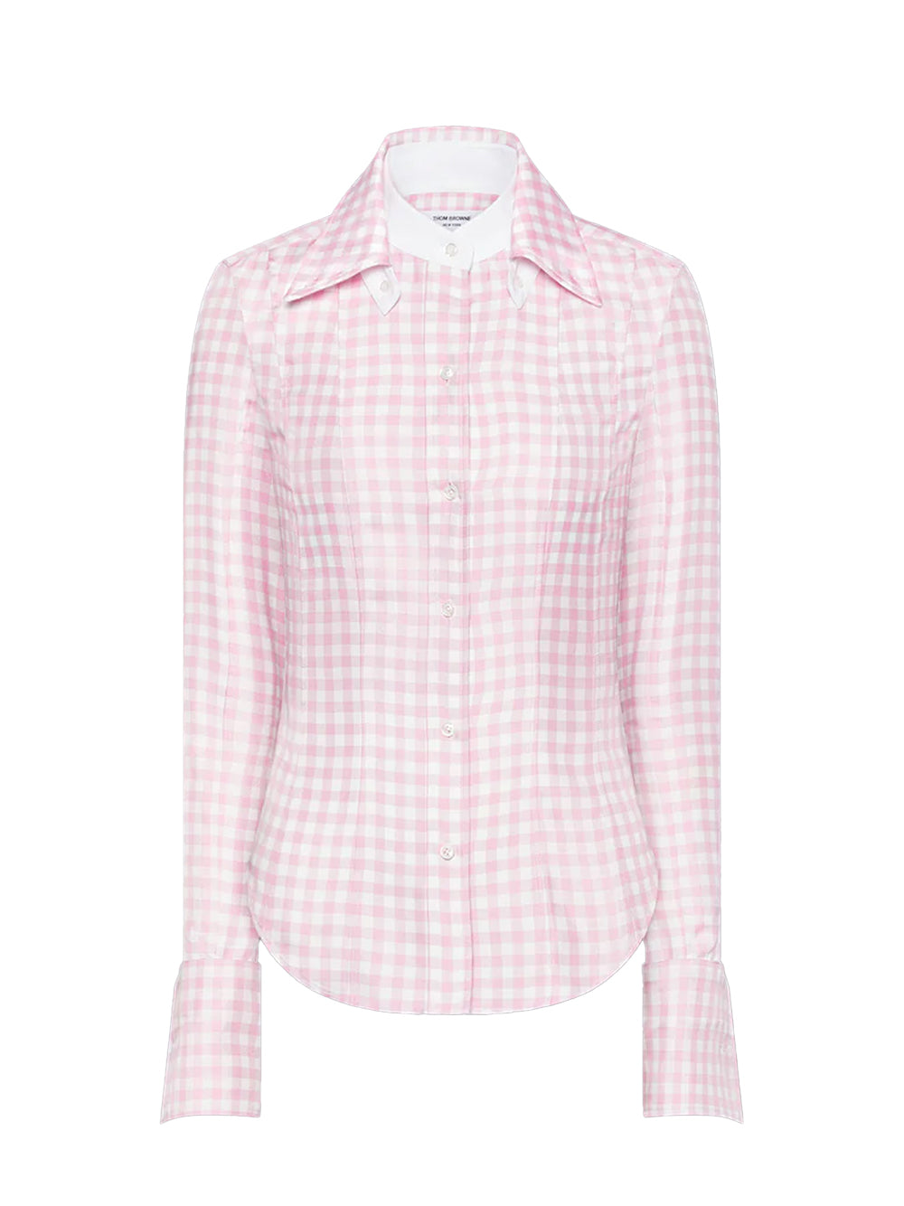 Thom Browne แบรนด์ดีไซเนอร์ชาวอเมริกันผู้มีชื่อเสียงจากการออกแบบเครื่องแต่งกายชาย และผู้ที่นำชุดสูทคลาสสิกมาดัดแปลงให้ทันสมัย เสน่ห์ที่ได้แรงบันดาลใจจากสไตล์คันทรี ผสานเข้ากับงานฝีมืออันประณีตในทุกรายละเอียด ปกเสื้อและข้อมือแบบถอดได้ ถ่ายทอดกลิ่นอายเสื้อทักซิโดในยุค Gilded Age เติมความสุภาพแบบคลาสสิกด้วยมิติแห่งงานดีไซน์เชิงประวัติศาสตร์ ลวดลายสนุกสนานแต่ยังคงโครงสร้างที่ชัดเจน ออกแบบมาให้สวมใส่ได้อย่างลงตัวในทุกฤดูกาล จับคู่กับกระโปรง Solid Double Dutchess Pencil Skirt เพื่อลุคที่สมบูรณ์แบบ