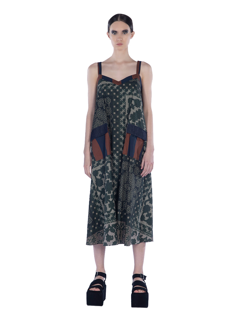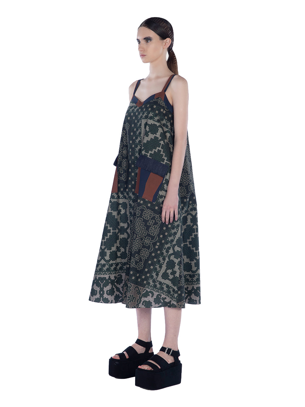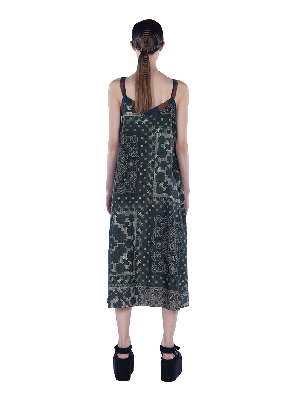 Mix Cotton Print Camisole Midi Green