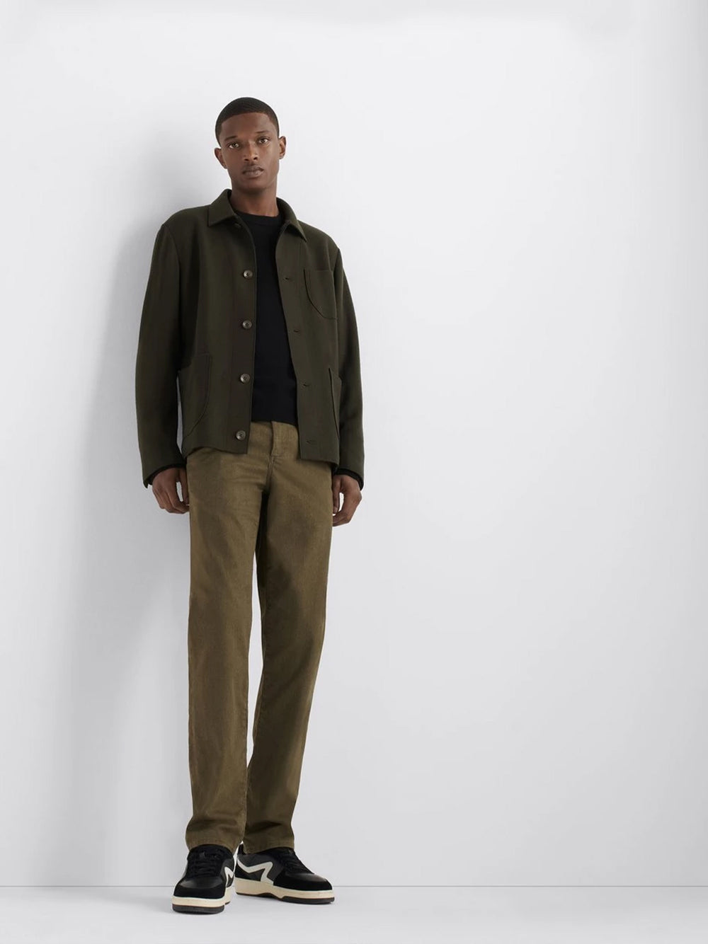 กางเกงขายาวจากแบรนด์ rag & bone ดีเทลกระดุมช่วงเอวแต่งซิปรูด พร้อมกระเป๋ากางเกงด้านข้าง และขากางเกงกระบอก ชิ้นแฟชั่นสวมใส่สบายที่ตอบโจทย์ไลฟ์สไตล์เรียบง่ายแต่แฝงด้วยกลิ่นอายของความโมเดิร์น สามารถหยิบมามิกซ์แอนด์แมทช์เข้ากับเสื้อยืดแขนสั้นพร้อมเลเยอร์ด้วยเสื้อแจ็คเก็ตเดนิมแขนยาว ช่วยครีเอทลุคออฟฟิศสุดชิคให้กับผู้สวมใส่