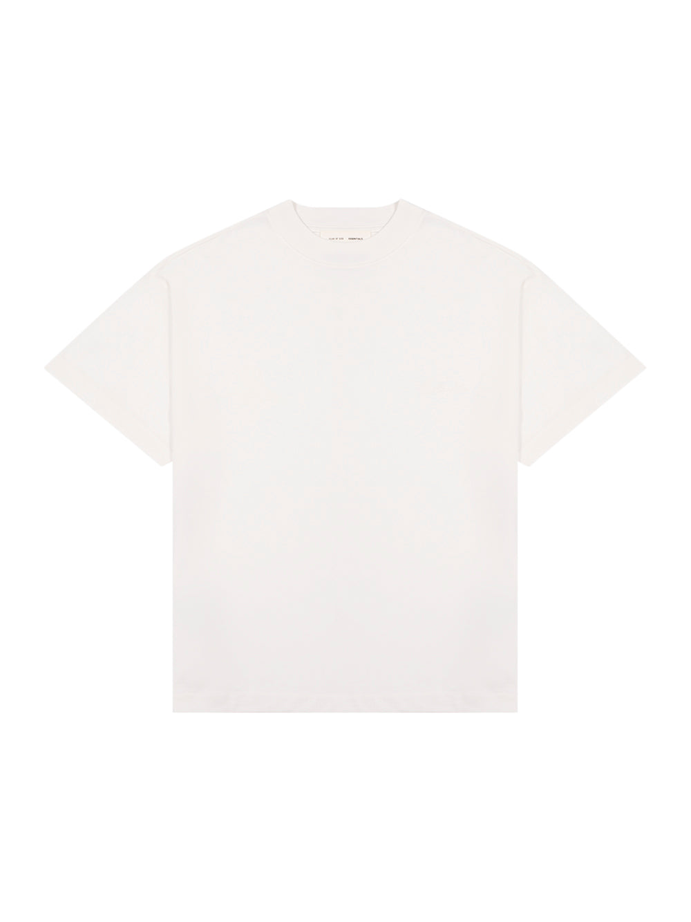 The Essential Tee is made from lightweight 60% cotton, 40% polyester jersey. The rib-knit crewneck tee features a vintage fit to shape more closely to the body with shorter sleeves. Branding includes an embroidered Essentials script logo on front and the Fear of God Essentials label at the back collar.
