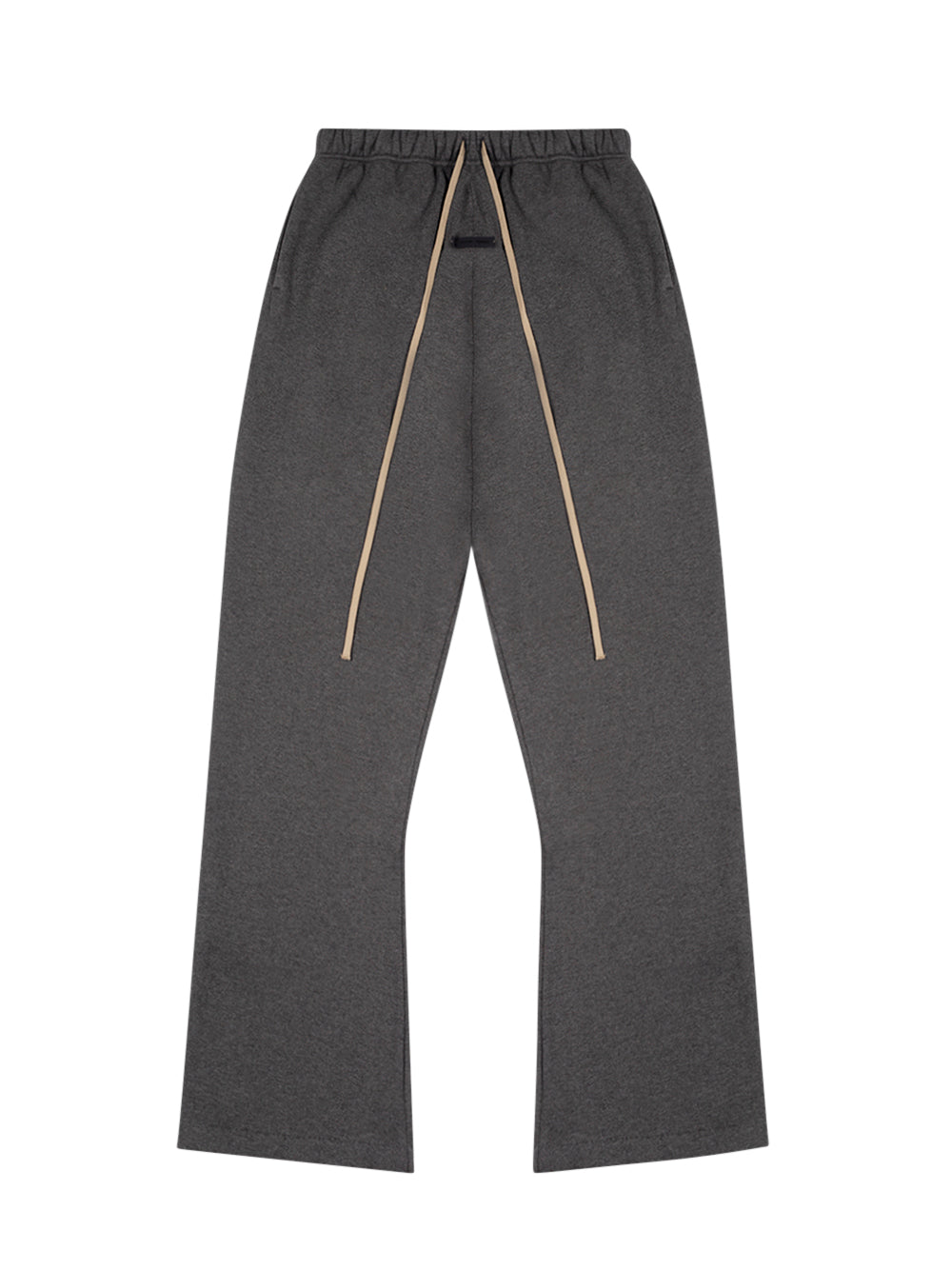 The Flare Sweatpant is crafted from 480gsm core fleece, cut in a relaxed silhouette that extends into a flared leg. Finishing details include an encased elastic waistband with elongated drawcords, side seam pockets, and a Fear of God Essentials rubberized label stitched at the center front.