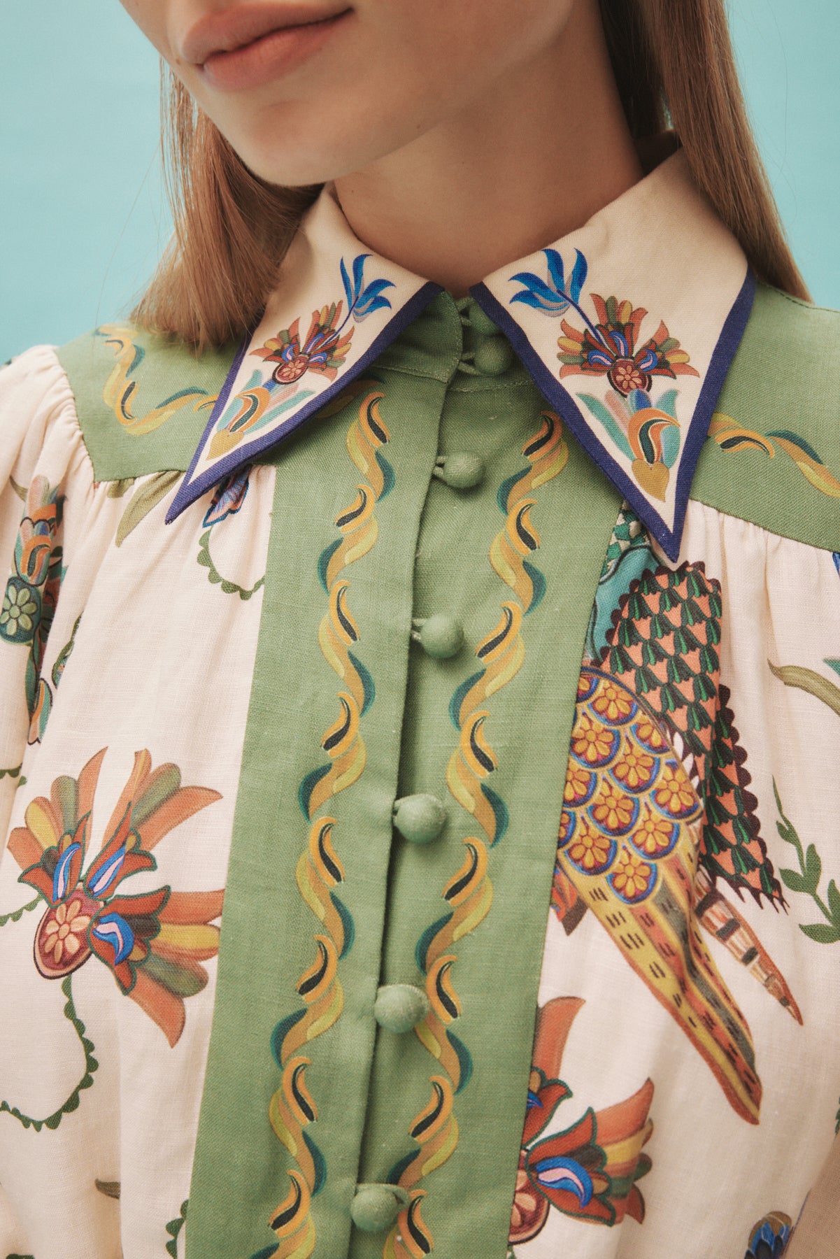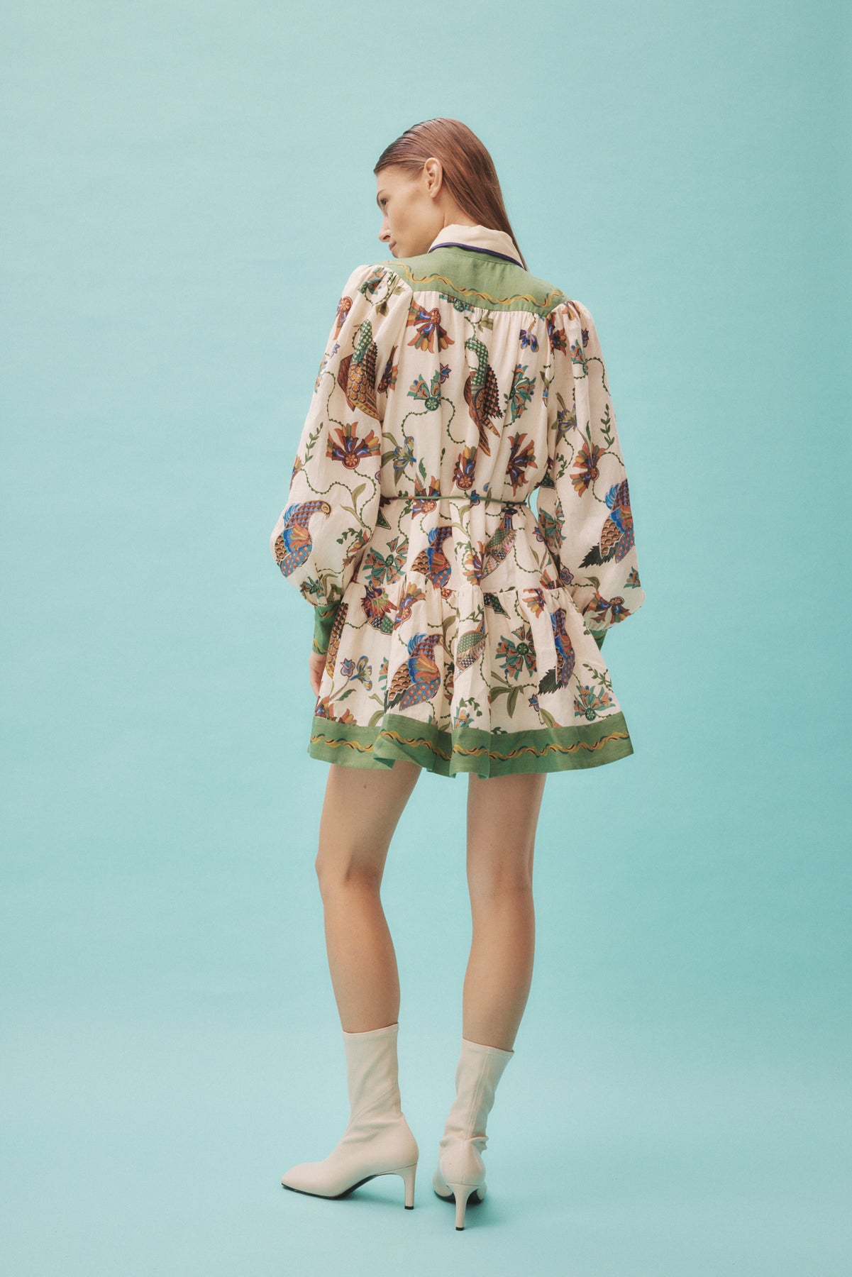 ชุดเดรสเชิ๊ตสั้นสำหรับคุณสุภาพสตรีตัวนี้ โดดเด่นด้วยการเล่นสีตัดกันของลายผ้าได้อย่างลงตัว ตัดขอบสีตรงบริเวณสาบเสื้อด้านหน้า และชายขอบแขนเสื้อ ดีไซน์คอปกแหลม เพิ่มดีเทลแขนพองเพิ่มความอ่อนหวานให้กับชุด มาพร้อมสายรัดเอว