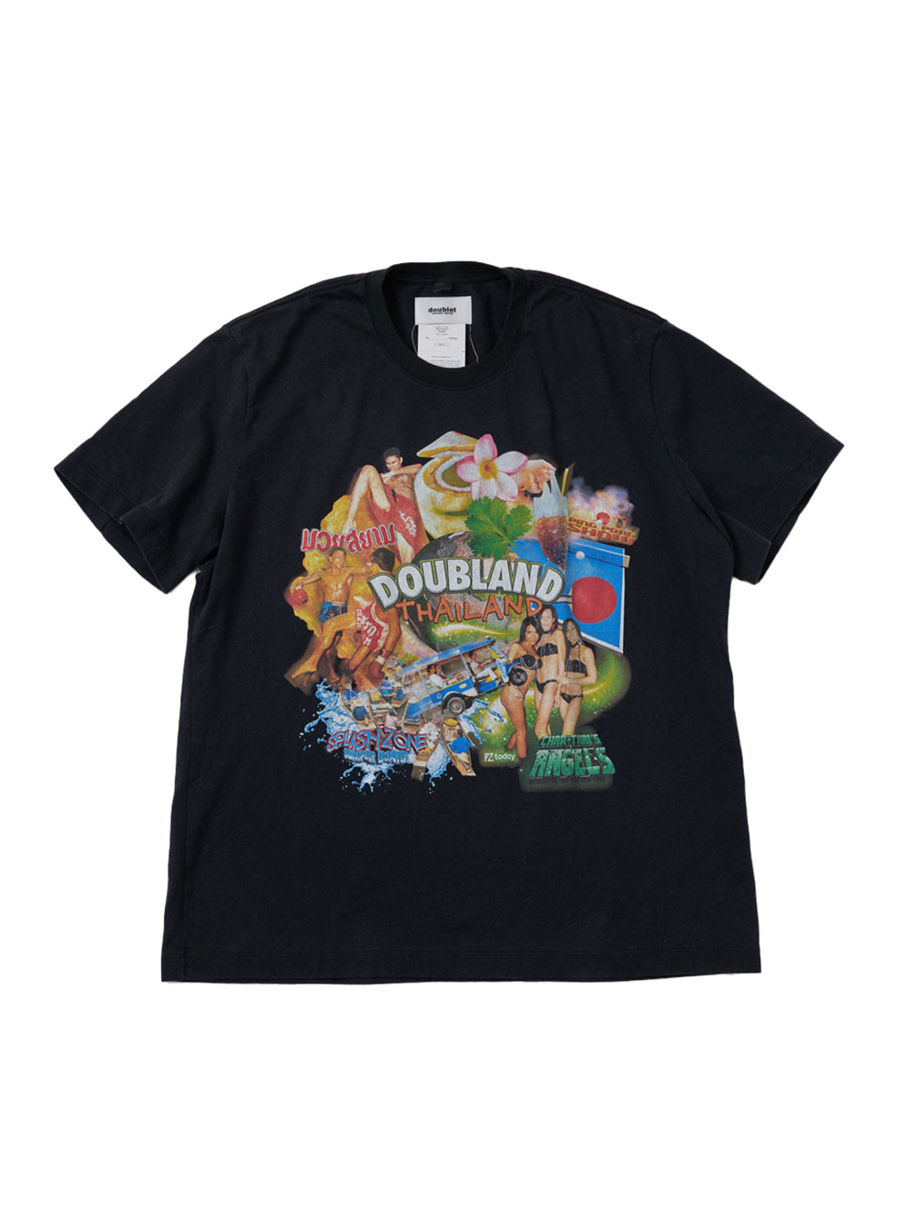 เสื้อยืดคอกลมแขนสั้น จากการร่วมมือกันระหว่าง Doublet x PZ Today ผลิตจากผ้าฝ้ายเกรดพรีเมี่ยม โดดเด่นด้วยลายพิมพ์กราฟฟิกขนาดใหญ่ที่ด้านหน้า และตัวหนังสือที่ไหล่ขวาด้านหลัง