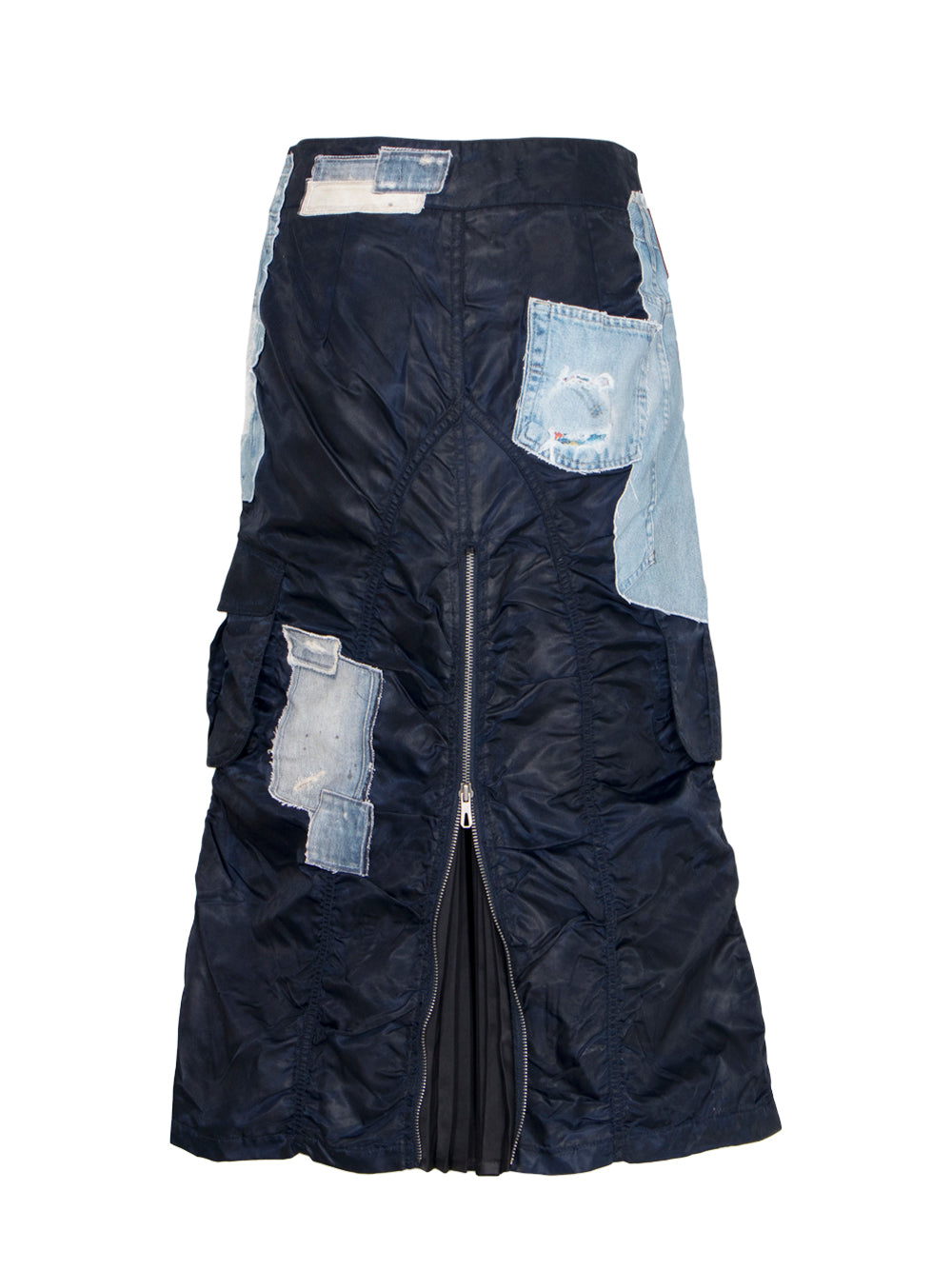 Women Denim Patch Coated Nylon Skirt (Navy)