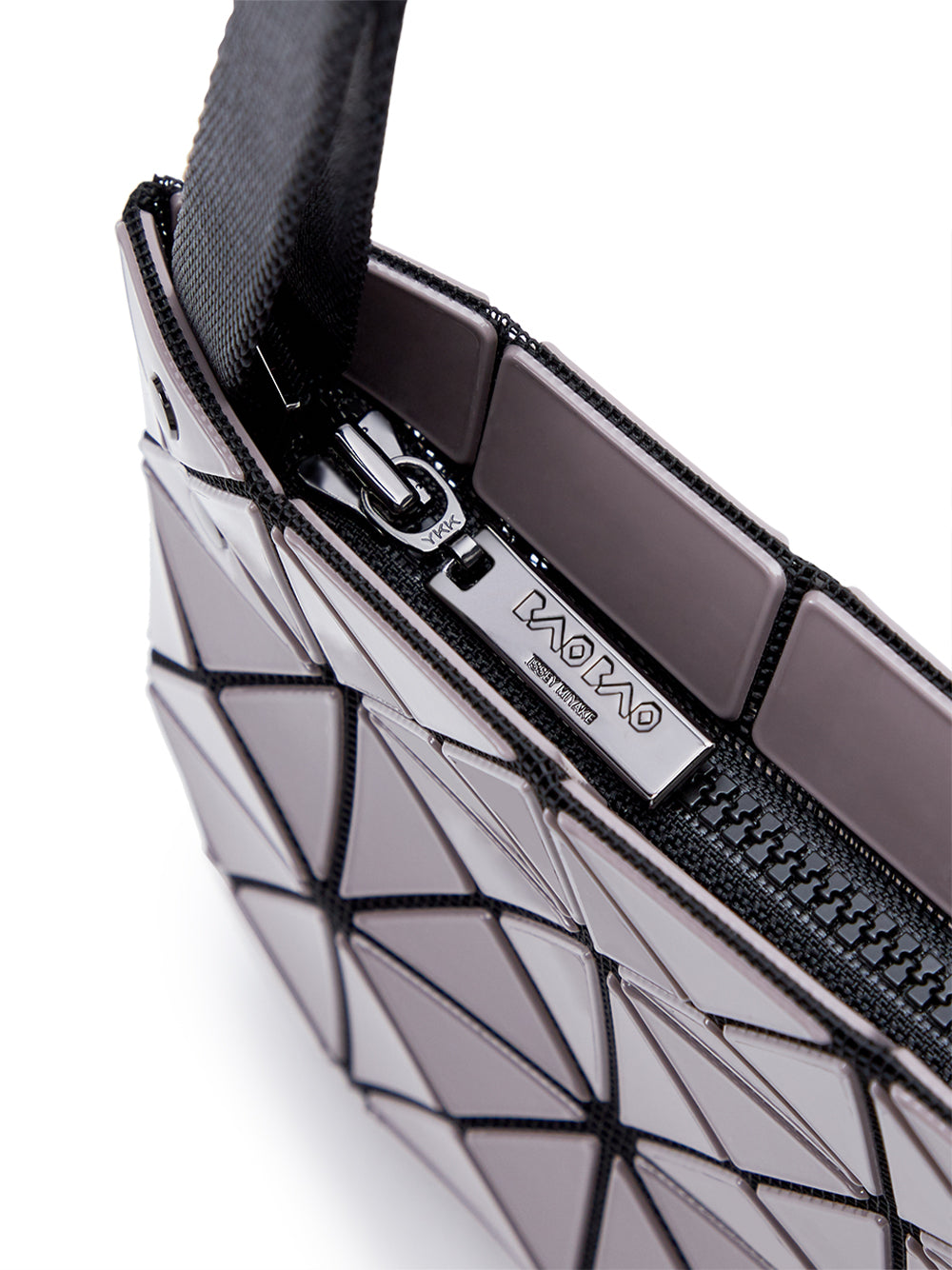 กระเป๋าสะพายไหล่ ที่ออกแบบโดย BAO BAO ISSEY MIYAKE ดีไซน์คลาสสิกทรงสี่เหลี่ยมจตุรัส มาพร้อมลวดลายสามเหลี่ยมที่มีมิติด้านนอก เพิ่มลูกเล่นลายเส้นสามเหลี่ยมมีเอกลักษณ์ ที่ปิดแบบซิป มีช่องกระเป๋าด้านในและสายสะพายปรับระดับความยาวได้