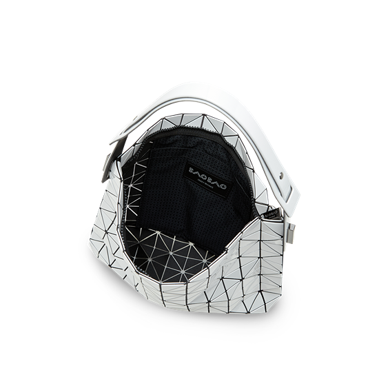กระเป๋าสะพายไหล่ ที่ออกแบบโดย BAO BAO ISSEY MIYAKE ดีไซน์คลาสสิกทรงสี่เหลี่ยม ออกแบบมาในลวดลายสามเหลี่ยมที่มีมิติด้านนอก มาพร้อมที่ปิดแบบซิปและสายสะพายแบบหัวล็อค สามารถถอดหรือเก็บพับได้