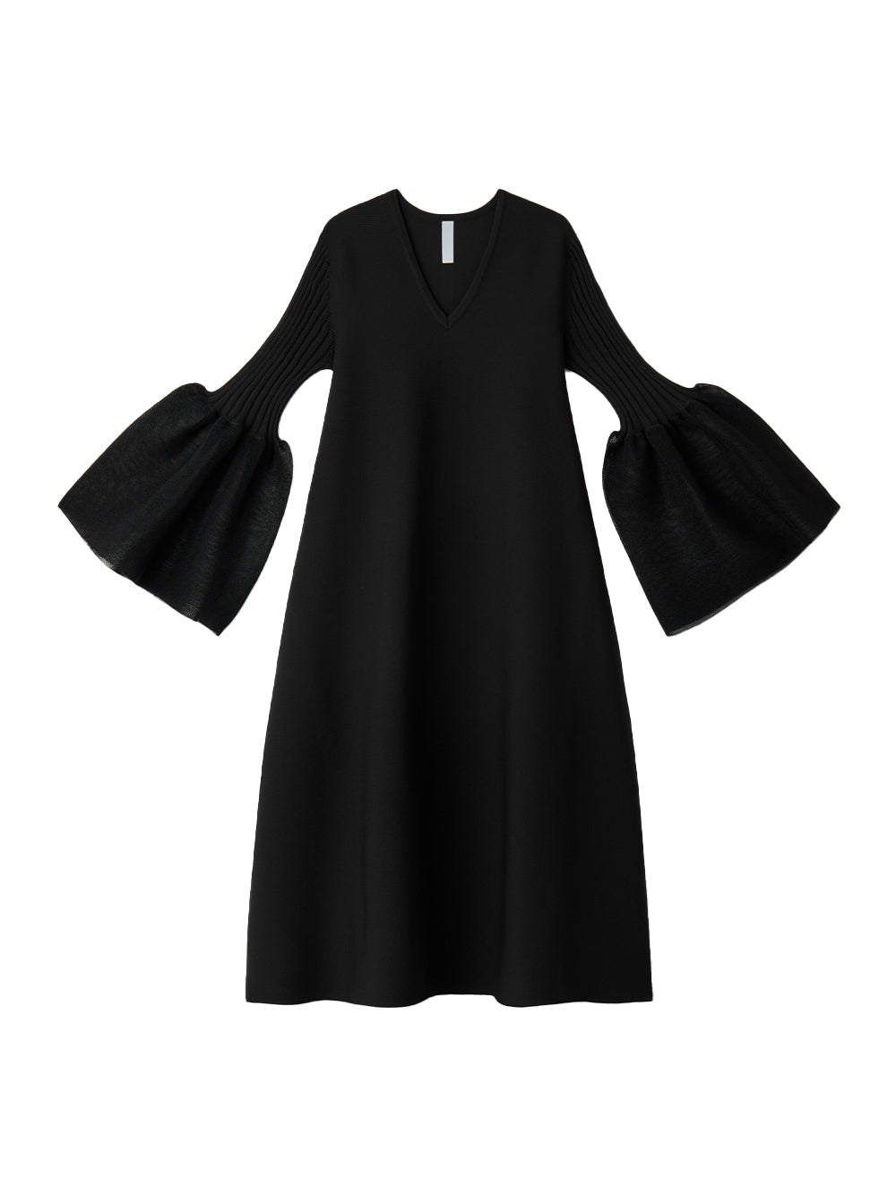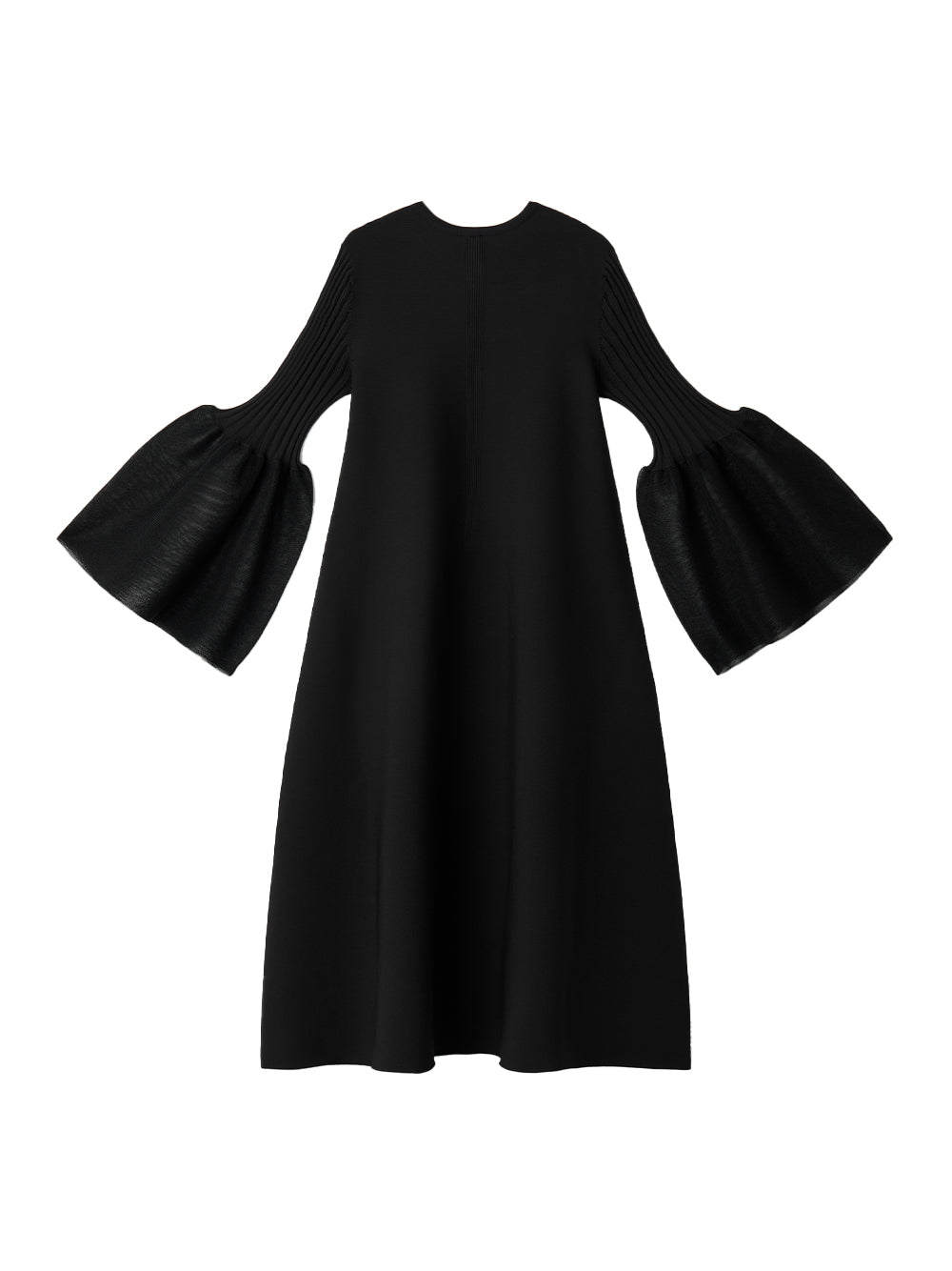 CFCL Pottery Glitter Long Bell Sleeve Flare Dress Black-black