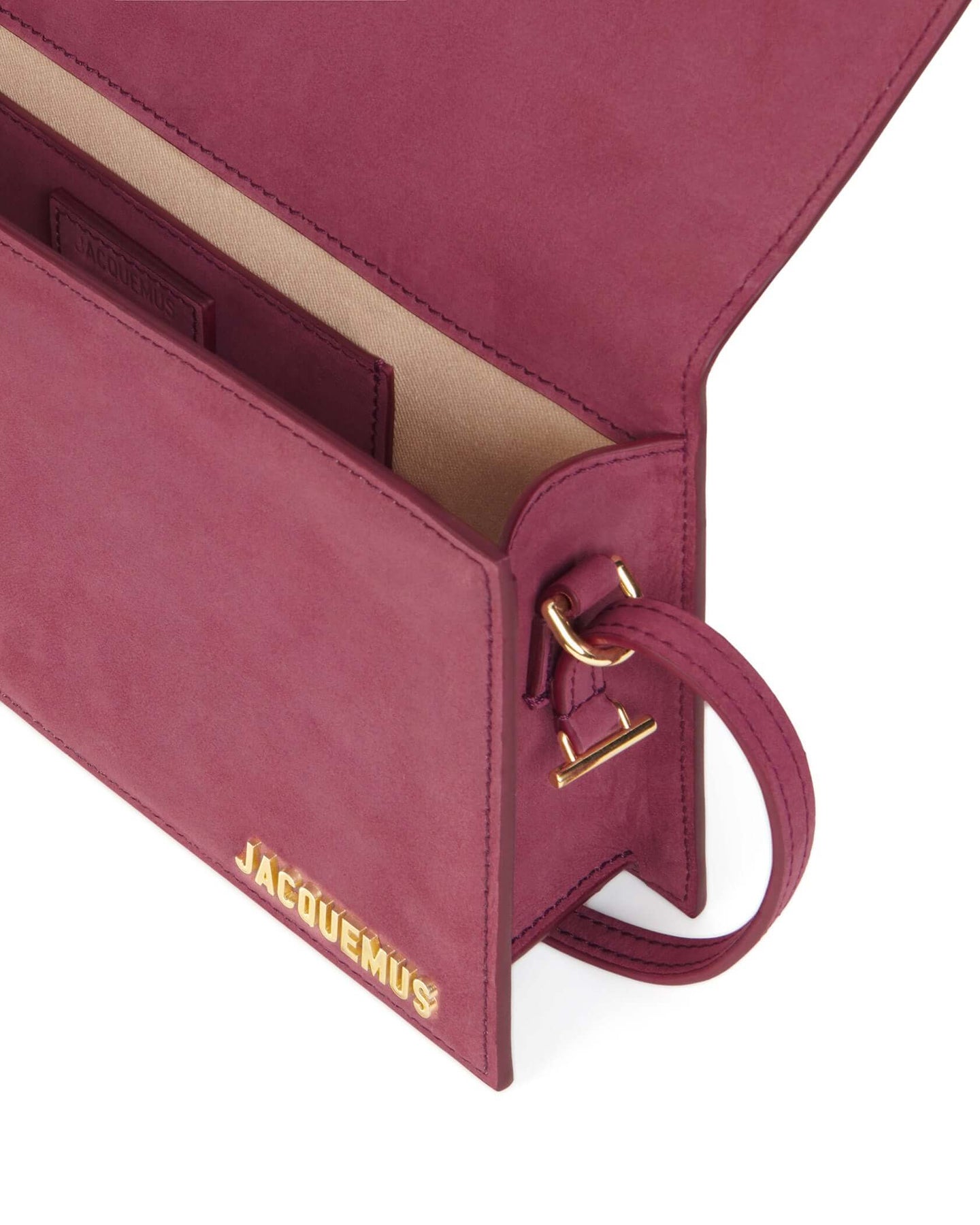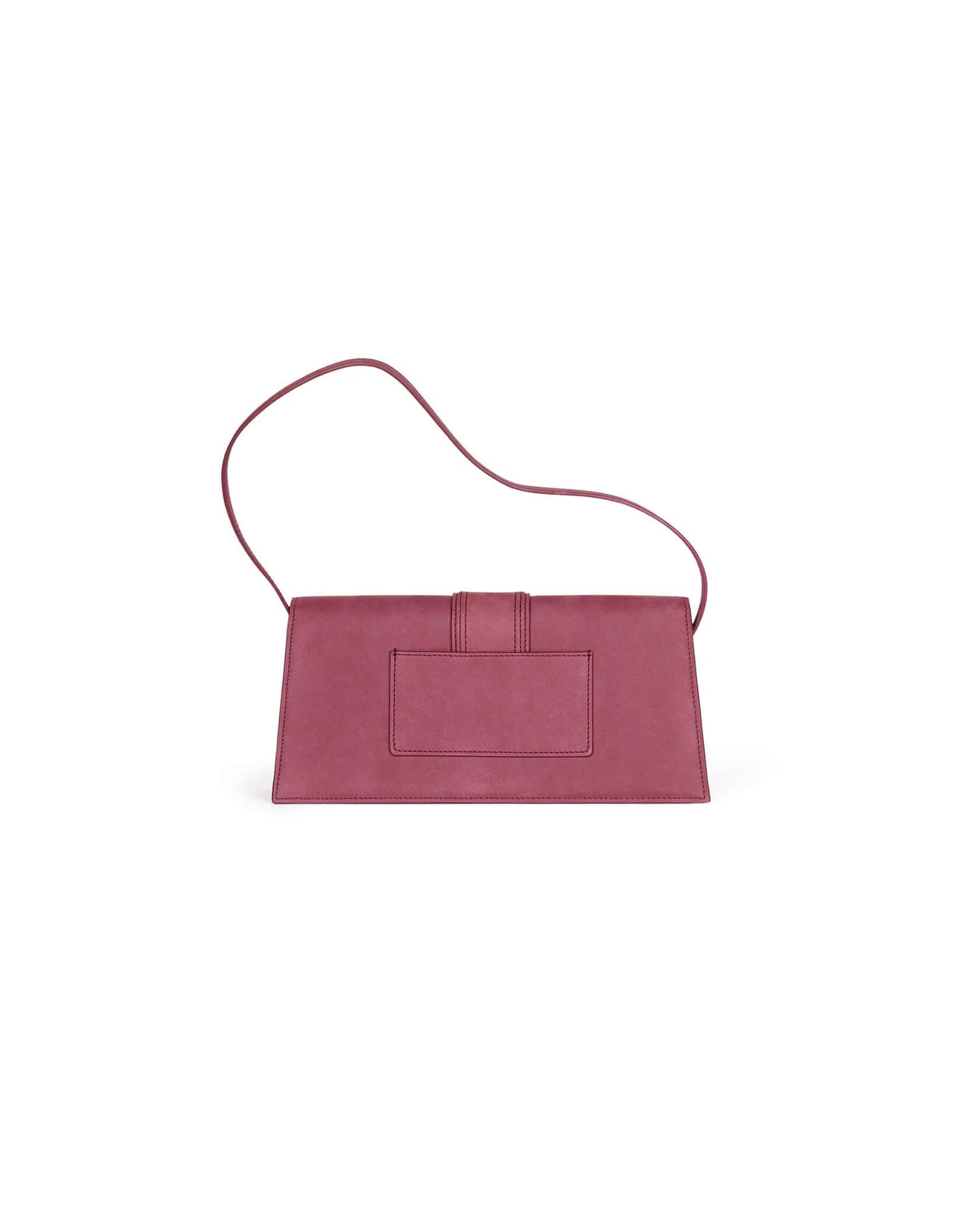 Nubuck leather /structured shoulder bag/ Magnetic flap tab closure/ Slim shoulder strap/Back patch pocket/ Interior card pocket/ Gold metal logo and hardware/ Fully lined in cotton/ Dyed edges/ 28 x 13.5 cm