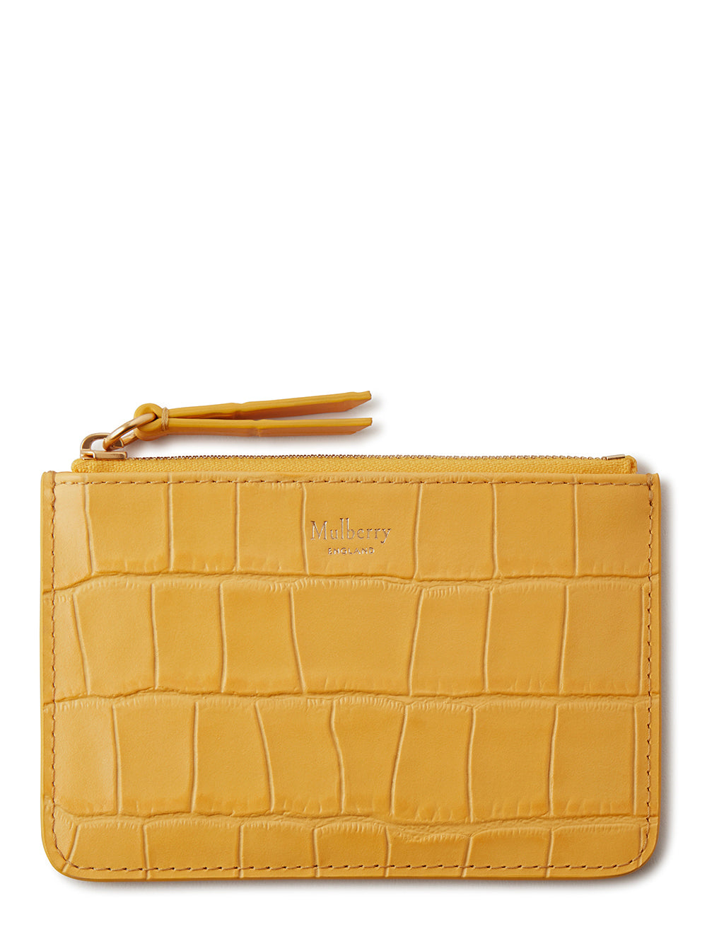 กระเป๋าสตางค์ทรงสี่เหลี่ยมจากแบรนด์ Mulberry ไอเทมขนาดกะทัดรัดที่สามารถหยิบมาใช้ในได้ในวันแคชชวลสุดชิล ทรงกระเป๋าสี่เหลี่ยมขนาดเล็ก ฟินิชกระเป๋าปั๊มลายหนังจระเข้ ซิปรูดเปิดปิดกระเป๋า โดดเด่นด้วยสแตมป์โลโก้แบรนด์โทนสีทอง ด้วยขนาดที่พอเหมาะทำให้สามารถพกพาสิ่งของจำเป็นได้อย่างพอดี ไม่ว่าจะเป็นช่องใส่การ์ด และช่องกระเป๋าด้านหลัง