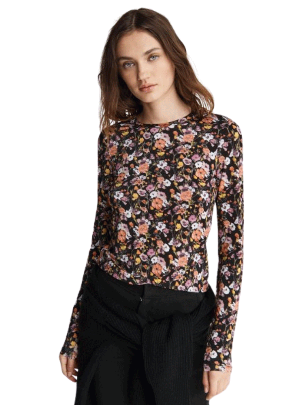 Sabeen is a slim fit long sleeve in an all over print made from a soft jersey with a touch of added stretch for comfort in movement.93% Viscose 7% Spandex