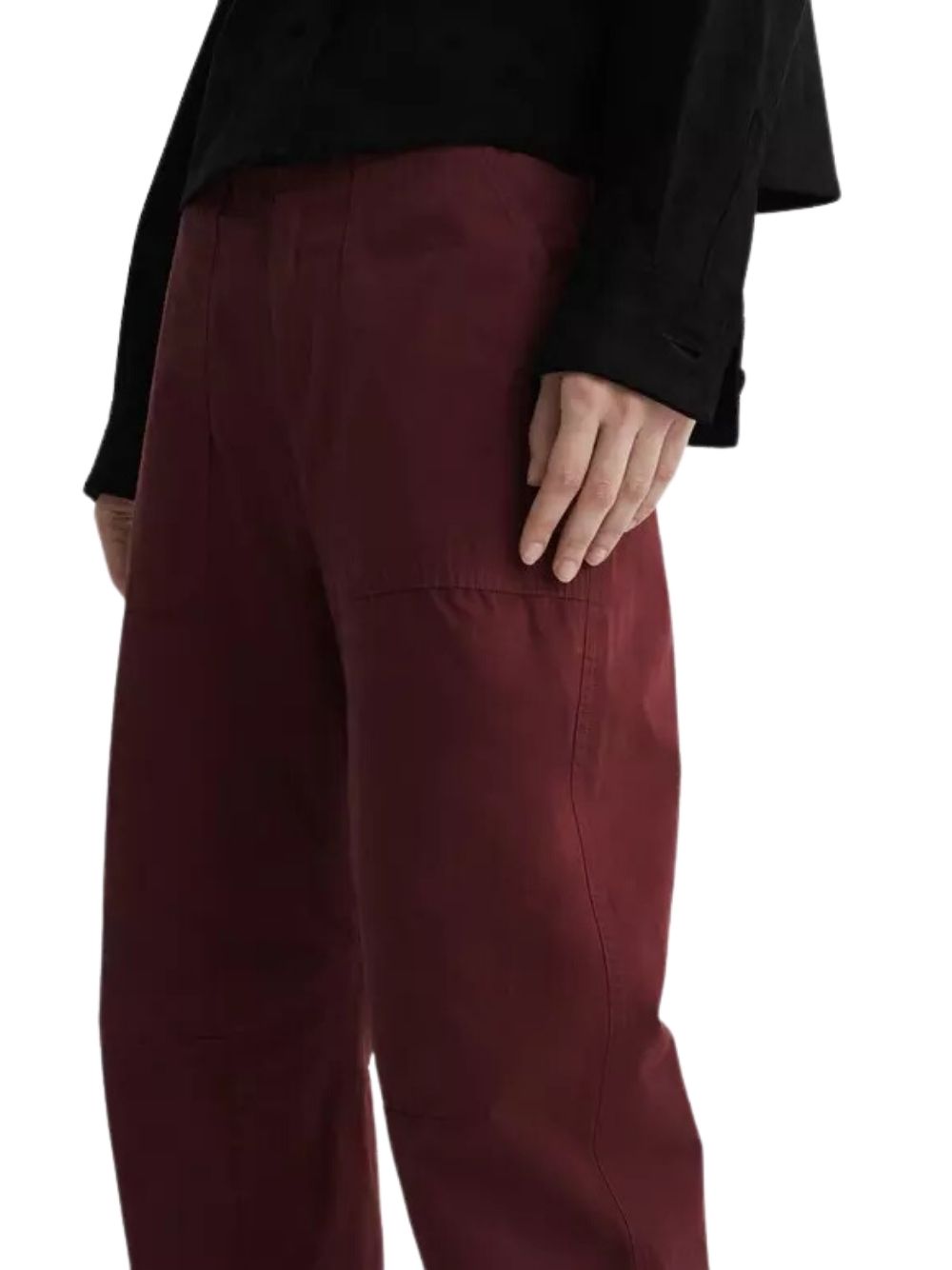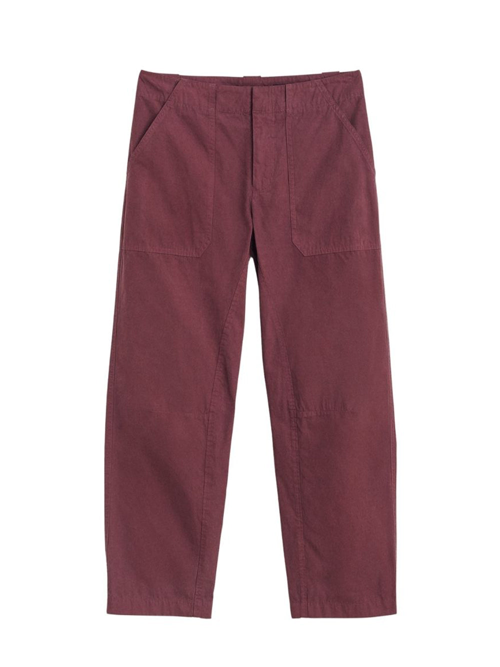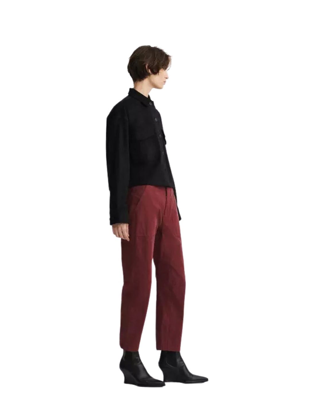 กางเกงขายาว สีแดงเบอร์กันดี รุ่น Leyton จาก rag & bone เป็นสไตล์ที่เหมาะกับวันทำงาน ดีไซน์ทรงหลวม ตัดเย็บจากผ้าฝ้ายอิตาลีน้ำหนักเบา ให้สัมผัสที่มีชีวิตชีวา