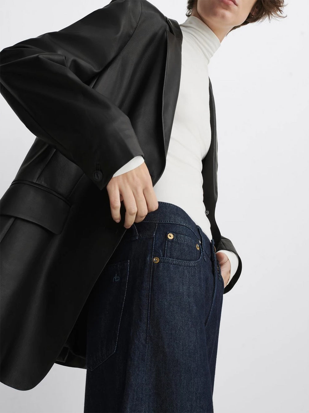 กางเกงเดนิมขาม้าจากแบรนด์ rag & bone โดดเด่นด้วยวัสดุผ้าเดนิมน้ำหนักเบา ดีเทลกระดุมช่วงเอวแต่งซิปรูด กระเป๋ากางเกง ห่วงใส่เข็มขัด และขากางเกงกว้าง ชิ้นแฟชั่นสวมใส่สบายที่ตอบโจทย์ไลฟ์สไตล์เรียบง่ายแต่แฝงด้วยกลิ่นอายของความโมเดิร์น สามารถหยิบมาสวมใส่ได้หลากหลายโอกาสตั้งแต่โอกาสวันธรรมดาหรือสามารถนำไปแมทช์เข้ากับเสื้อเชิ้ตแขนเสื้อยาวพร้อมเลเยอร์ทับด้วยเสื้อแจ็คเก็ตสูทช่วยปรับลุคให้ดูทางการมากยิ่งขึ้น