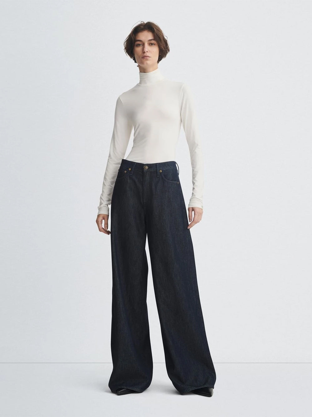 The Sofie. A high-rise fit with a wide leg that's a rag & bone office favorite. Crafted from super-soft Featherweight denim for a light, easy drape. In Rinse, a dark-wash indigo.