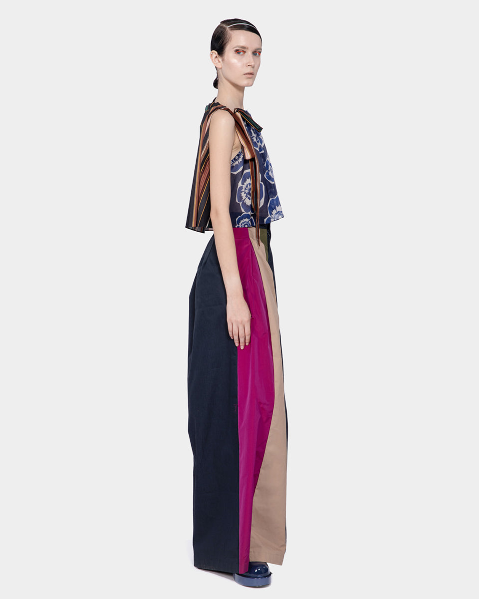 Mix Fabric Halter Top Navy