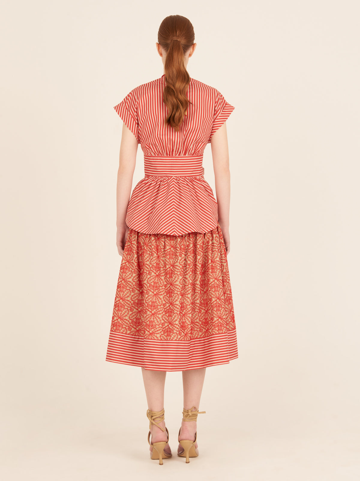เสื้อแขนสั้น รุ่น Elia สี Red Willow Lace ผลิตจากผ้าคอตตอนพิมพ์ลาย จาก Silvia Tcherassi ให้สัมผัสเบาสบายเมื่อสวมใส่