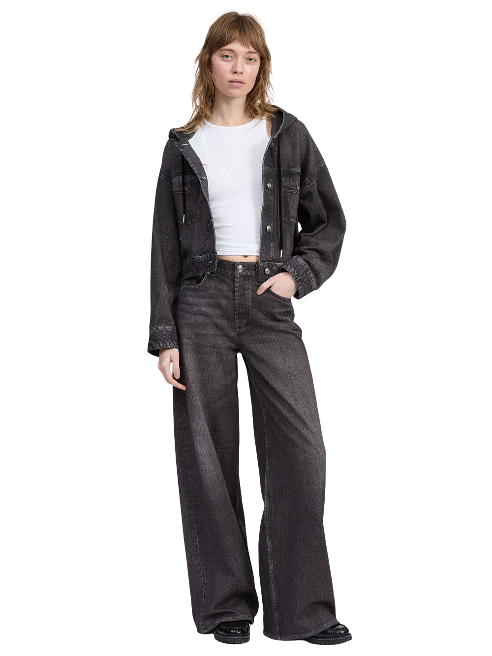 เสื้อกันหนาวแขนเสื้อยาวสวมใส่สบายจากแบรนด์ rag & bone เสื้อรุ่นนี้ผสมผสานระหว่างแจ็กเก็ตทรัคเกอร์และเสื้อฮู้ด มีการตัดเย็บจากผ้าคอตตอนเทอร์รี่ที่ให้สัมผัสนุ่มด้านใน และพิมพ์ลายด้านนอกให้ดูคล้ายเสื้อแจ็กเก็ตยีนสุดโปรดของคุณ ดีไซน์มาพร้อมเชือกรูดที่ใช้งานได้จริง กระเป๋าอกหลอก และกระดุมรูปกริชซิกเนเจอร์ที่ด้านหน้าและปลายแขน เสริมความสบายและลุคชิลด้วยกระเป๋าและรายละเอียดเดนิมอื่น ๆ ที่พิมพ์แบบดิจิทัลลงบนผ้า ชิ้นแฟชั่นสวมใส่สบายที่ตอบโจทย์ไลฟ์สไตล์เรียบง่ายแต่แฝงด้วยกลิ่นอายของความโมเดิร์น สามารถหยิบมาสวมใส่ได้หลากหลายโอกาส มิกซ์แอนด์แมทช์กับกางเกงเดนิมขายาวสำหรับลุคแคชชวล