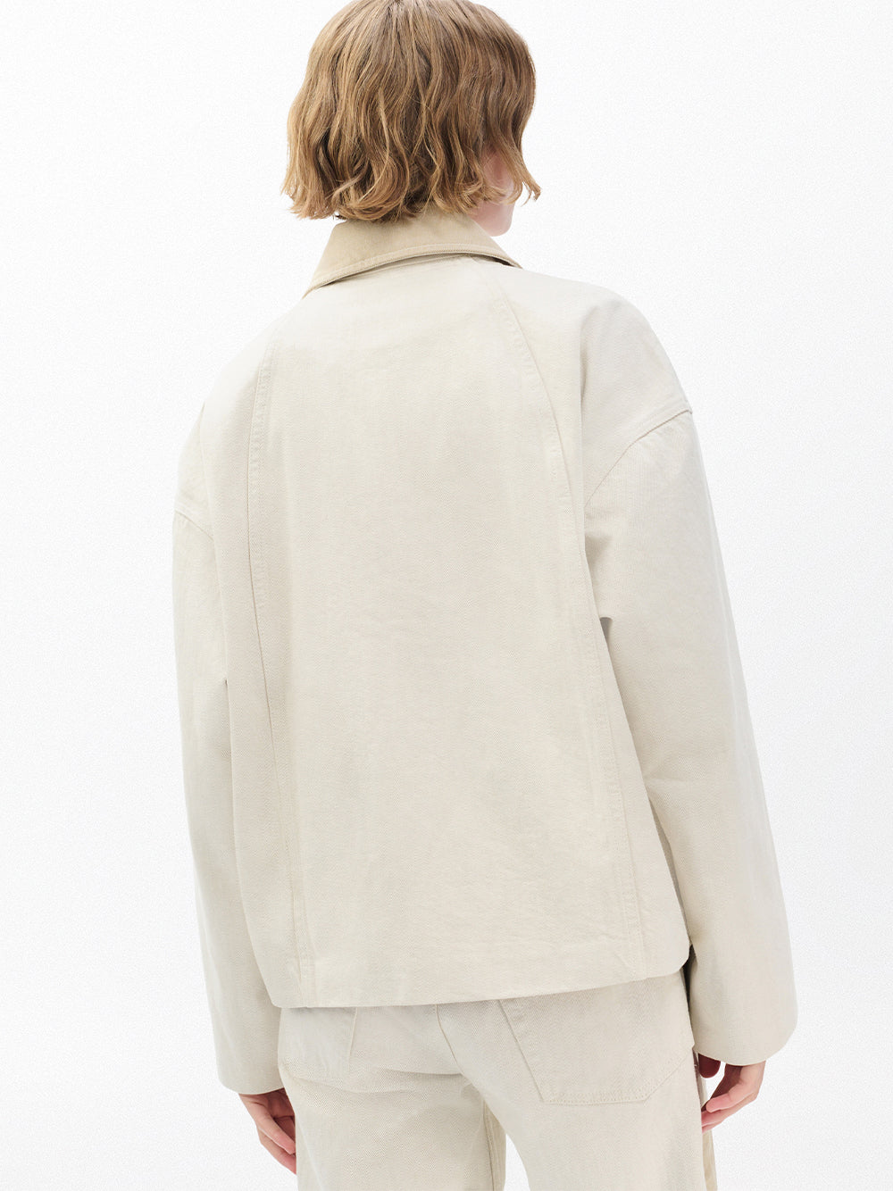 The ultimate transitional jacket for in-between seasons. Crafted from Lightweight Rigid non-stretch denim that provides structure, but breaks in over time for a soft and comfortable feel. In Two-Tone Stone, a soft ecru featuring a contrast sandstone collar. Pair it with the Logan Spliced Wide-Leg Jeans for a complete, matching look.