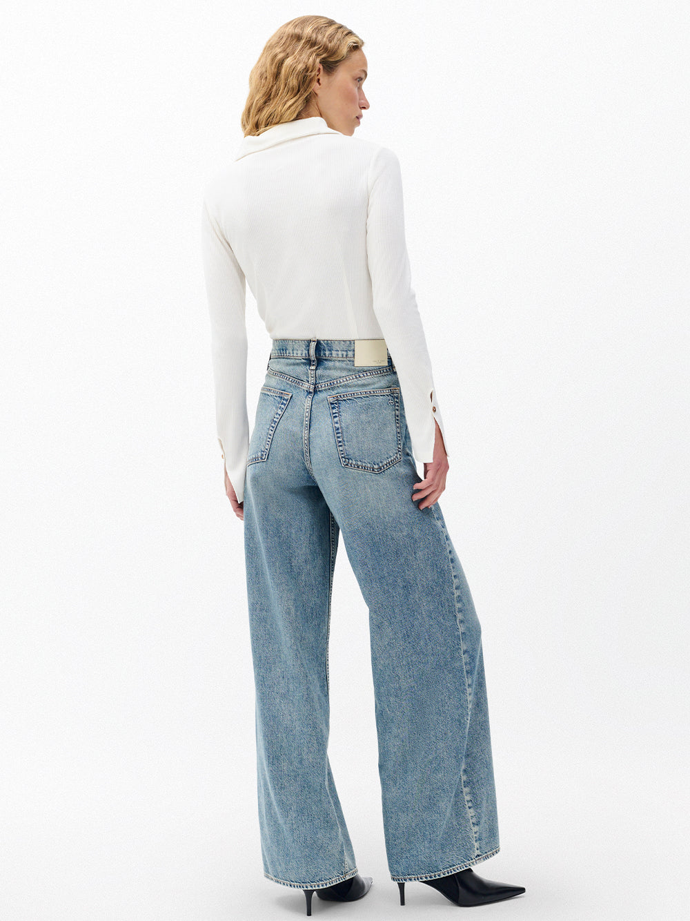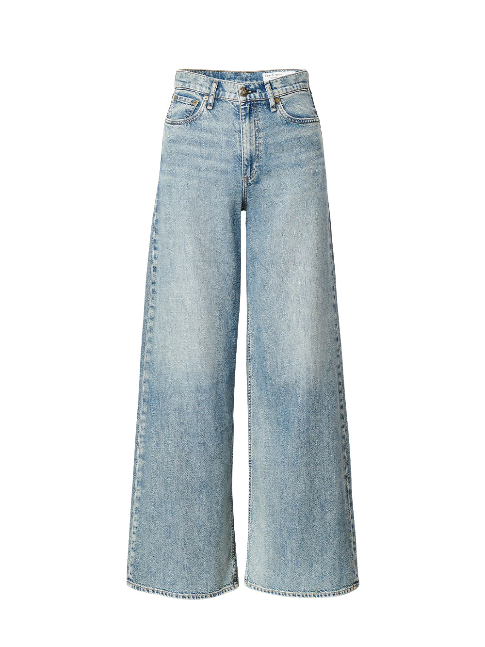 กางเกงเดนิมเอวสูงขากว้างจากแบรนด์ rag & bone โดดเด่นด้วยวัสดุผ้าเดนิมน้ำหนักเบา ดีเทลกระดุมสลักลายโลโก้แบรนด์ช่วงเอวแต่งซิปรูด กระเป๋ากางเกง ห่วงใส่เข็มขัด และขากางเกงกว้าง ชิ้นแฟชั่นสวมใส่สบายที่ตอบโจทย์ไลฟ์สไตล์เรียบง่ายแต่แฝงด้วยกลิ่นอายของความโมเดิร์น สามารถหยิบมาสวมใส่ได้หลากหลายโอกาสตั้งแต่โอกาสวันธรรมดาหรือสามารถนำไปแมทช์เข้ากับเสื้อเชิ้ตแขนเสื้อยาวพร้อมเลเยอร์ทับด้วยเสื้อแจ็คเก็ตสูทช่วยปรับลุคให้ดูทางการมากยิ่งขึ้น