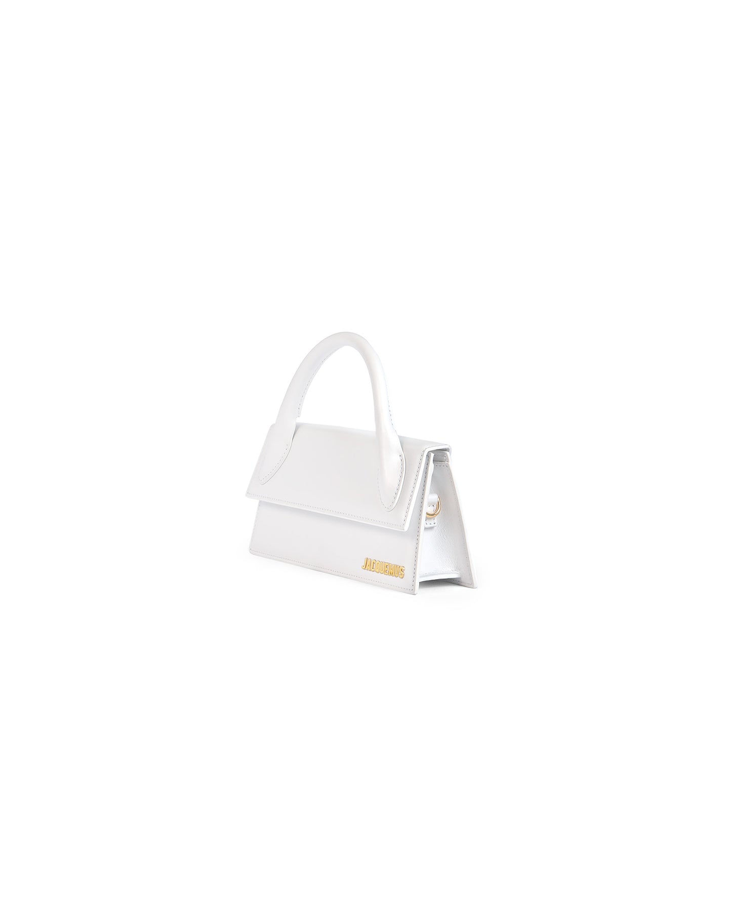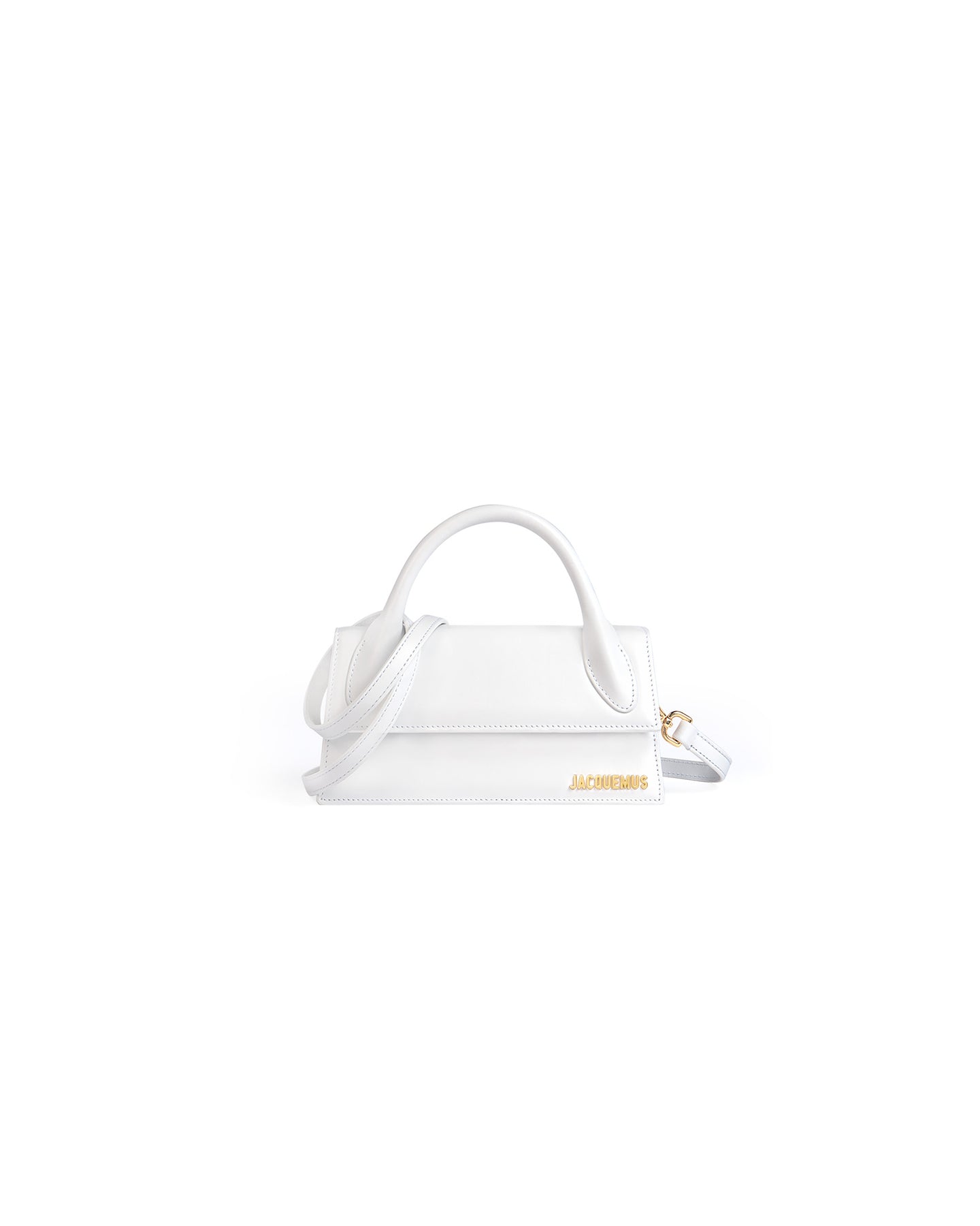 กระเป๋าหนังสีขาวทรงซิกเนเจอร์ รุ่นยาว จาก Jacquemus มาพร้อมสายสะพายถอดออกได้