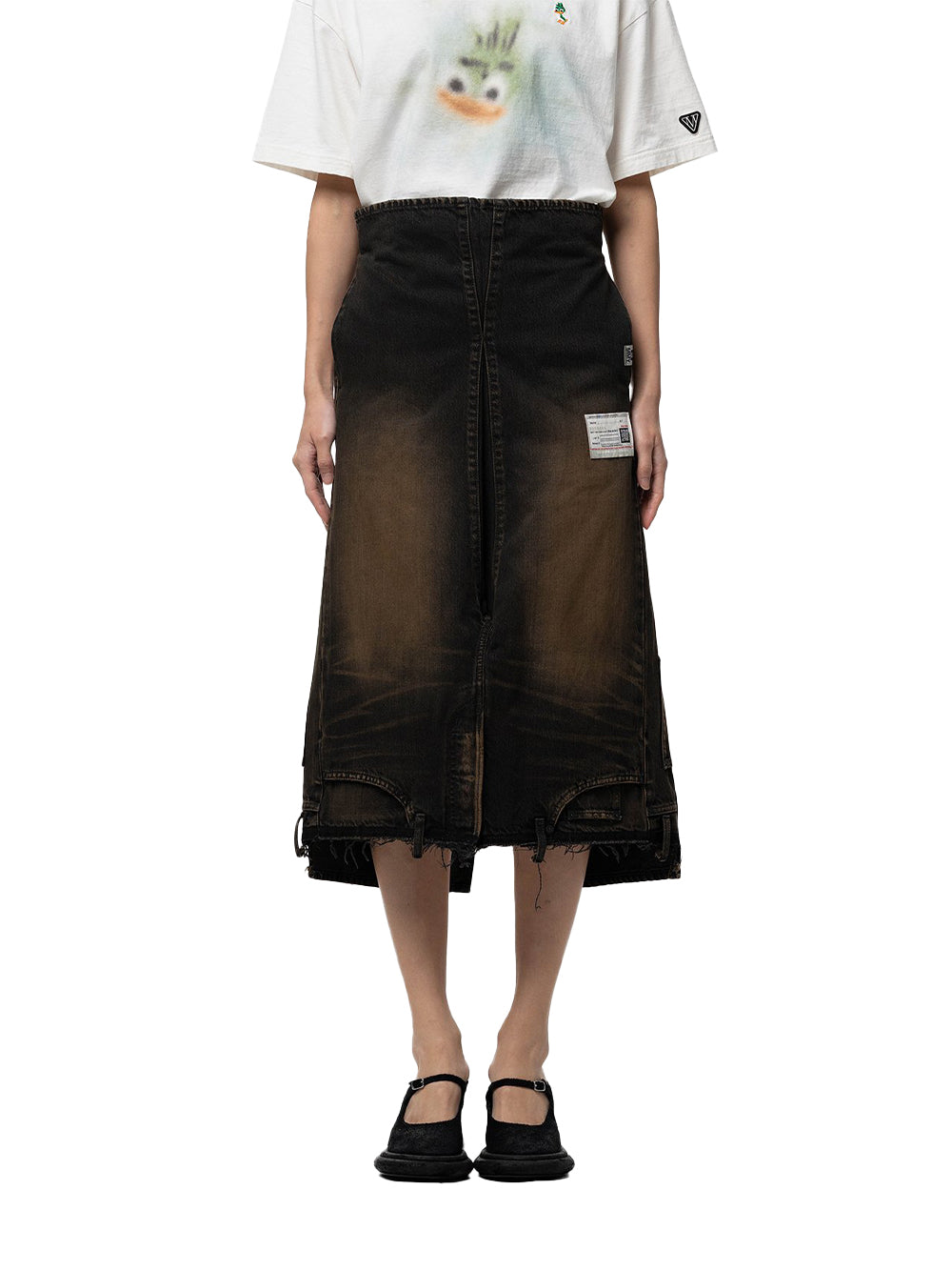 Distressed Denim Skirt Black