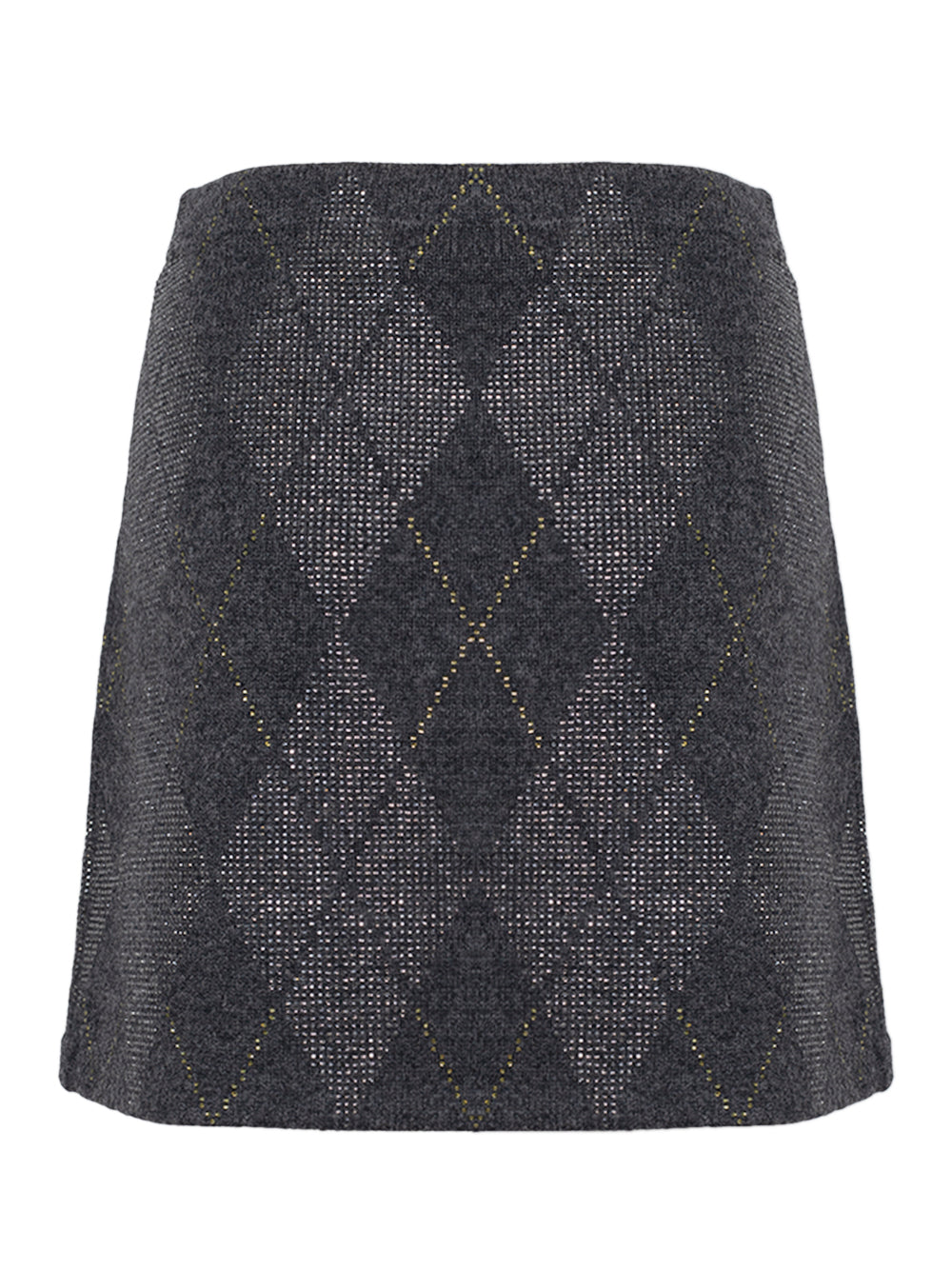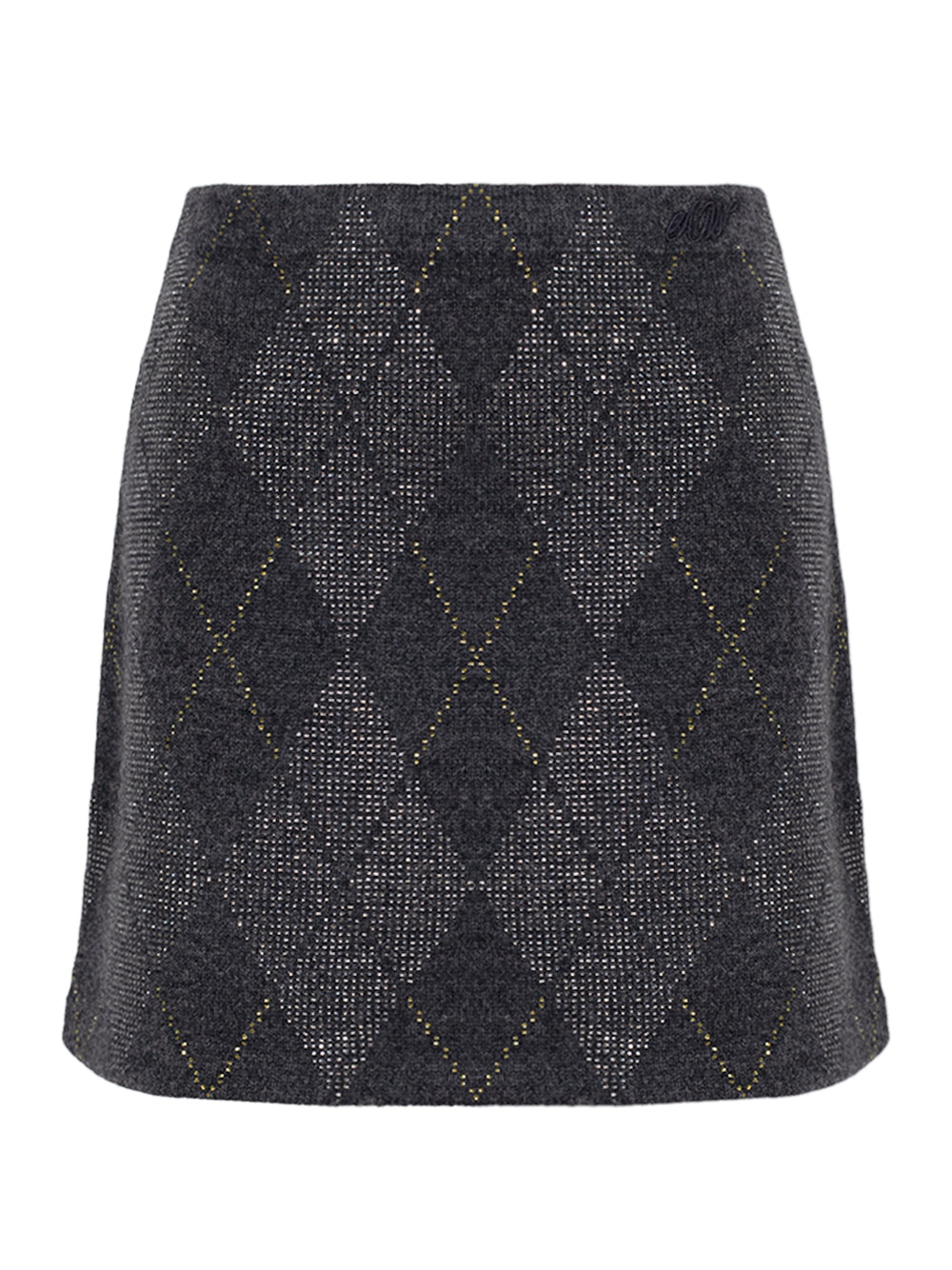 Crystal Hotfix Argyle Wool-Blend Tennis Skirt (Graphite)
