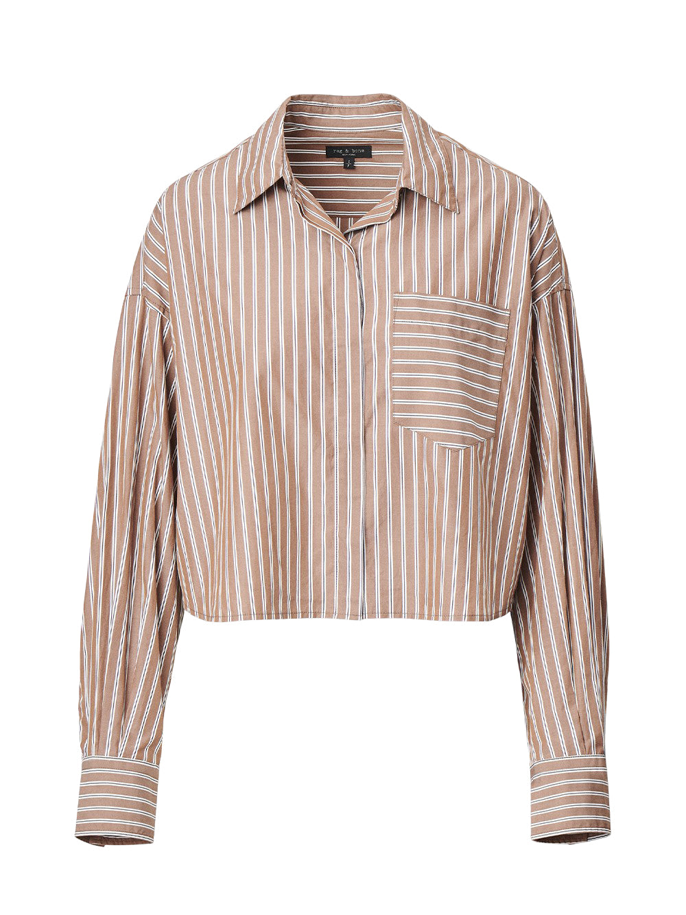 เสื้อเชิ้ตครอปแขนเสื้อยาวดีไซน์คลาสสิคจากแบรนด์ rag & bone ดีเทลปกคอเสื้อพร้อมแถบกระดุมติดด้านหน้า โดดเด่นด้วยแพทเทิร์นลายทาง ความยาวเสื้อครอป และช่องกระเป๋าบริเวณอกเสื้อ ชิ้นแฟชั่นสวมใส่สบายที่ตอบโจทย์ไลฟ์สไตล์เรียบง่ายแต่แฝงด้วยกลิ่นอายของความโมเดิร์น สามารถหยิบมาสวมใส่ได้หลากหลายโอกาสตั้งแต่โอกาสวันธรรมดาไปจนถึงนำไปแมทช์กับเสื้อสูทสำหรับลุคทางการสุดพิเศษ