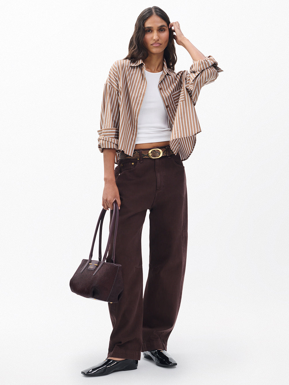 Marin Cropped Striped Shirt (Tabacco Stripe)