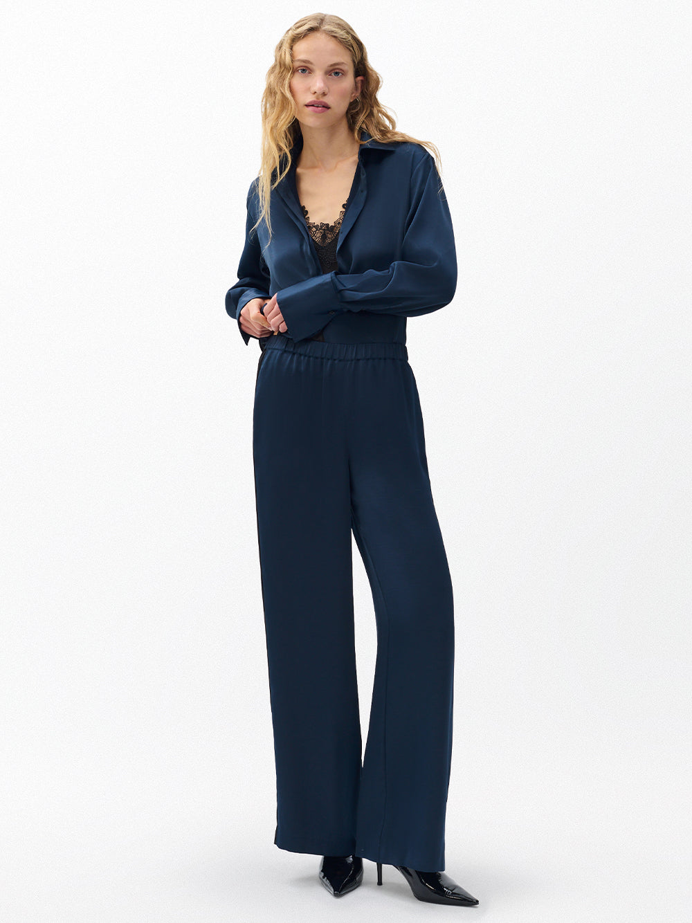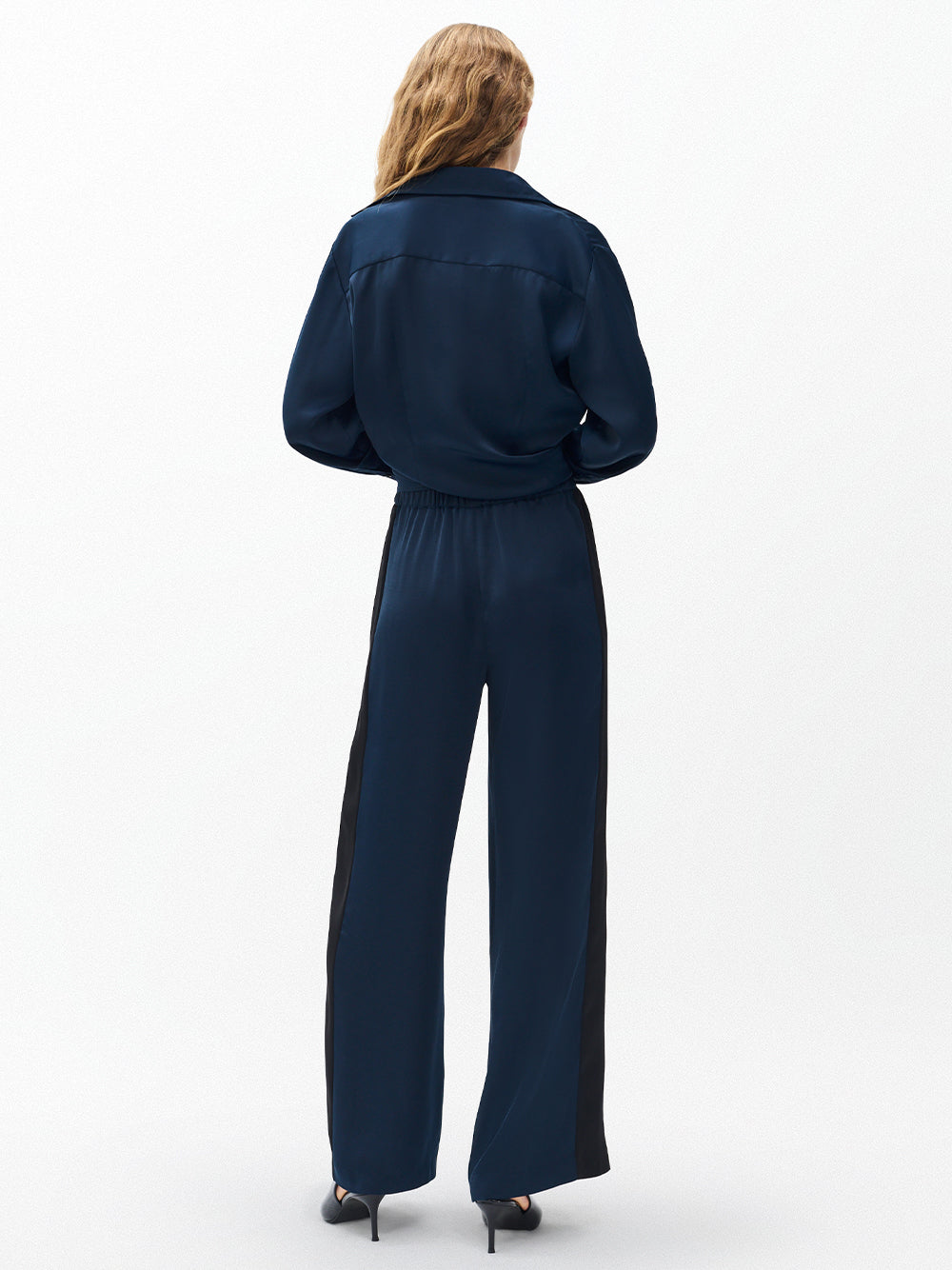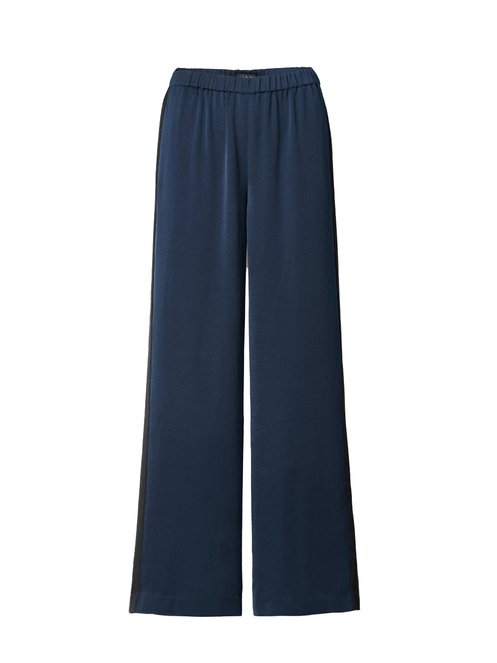 Everyday ease. These pants are cut for a low-rise, relaxed fit. Fully lined with an elastic waistband, they're ultra-comfortable and feature contrast side stripes for a sporty look. Pair yours with a luxurious polo sweater for the ultimate airport look.