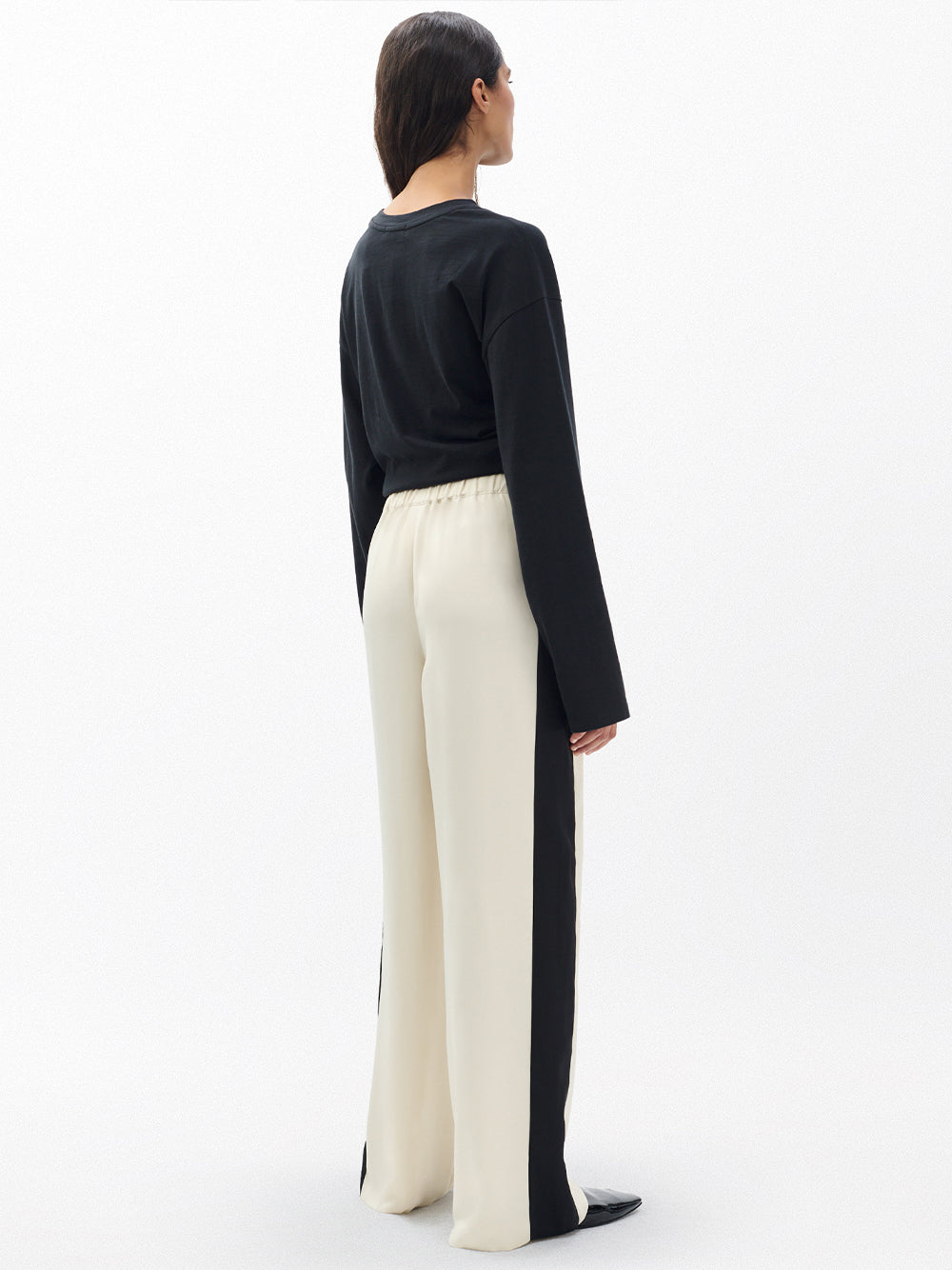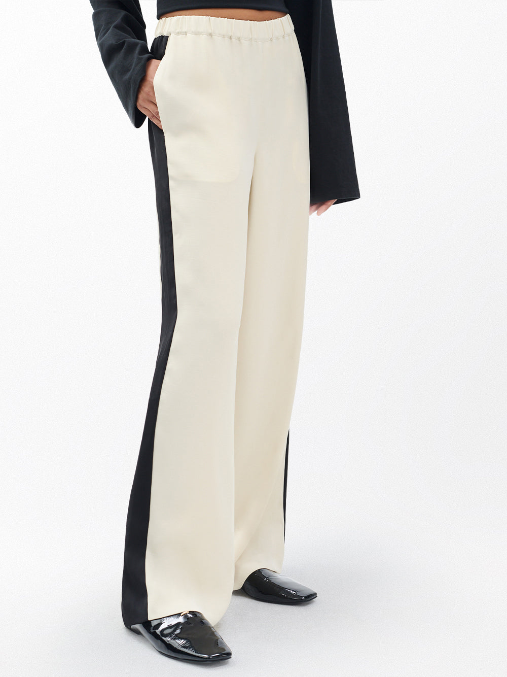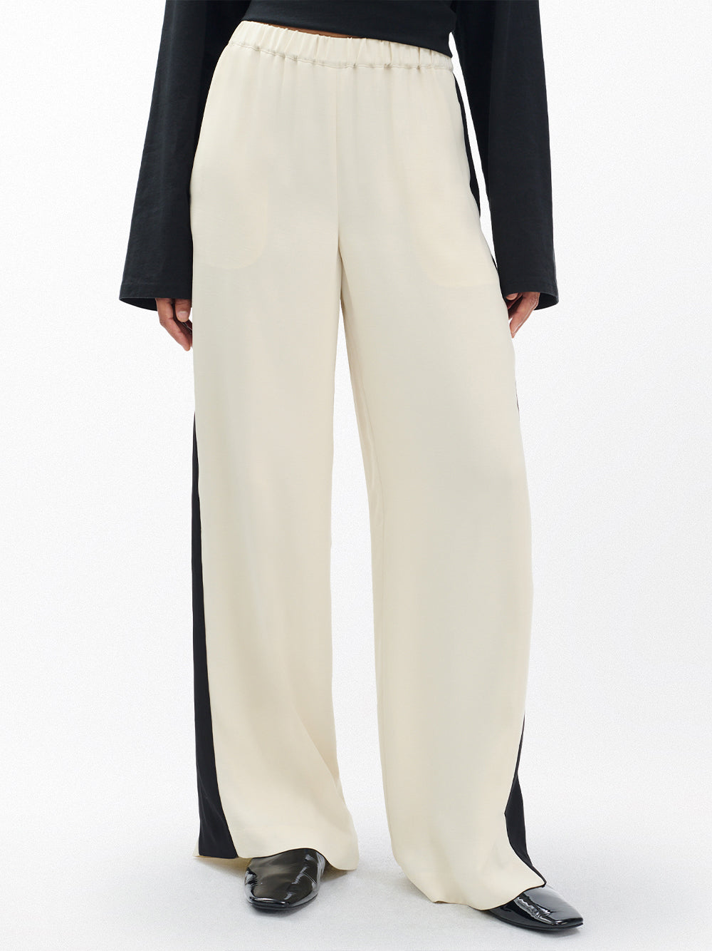Everyday ease. These pants are cut for a low-rise, relaxed fit. Fully lined with an elastic waistband, they're ultra-comfortable and feature contrast side stripes for a sporty look. Pair yours with a luxurious polo sweater for the ultimate airport look.