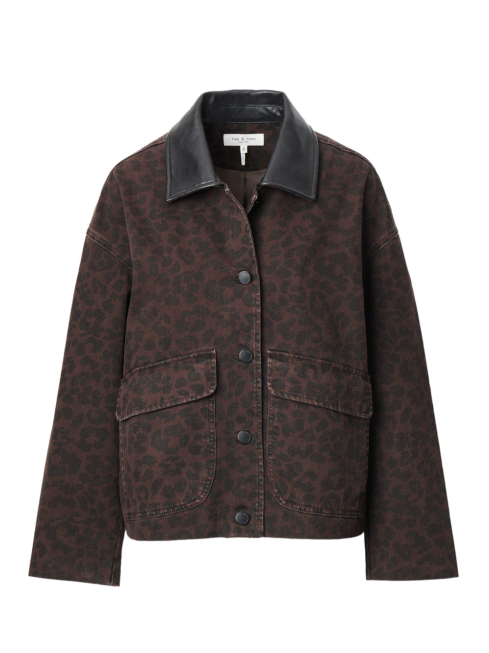 เสื้อแจ็คเก็ตแขนเสื้อยาวดีไซน์คลาสสิคจากแบรนด์ rag & bone ผลิตจากผ้าเดนิมน้ำหนักเบาแบบ Rigid ที่ไม่ยืด ให้โครงสร้างสวยคมชัด แต่จะนุ่มสบายมากขึ้นเมื่อผ่านการสวมใส่ โดดเด่นด้วยลาย Espresso Leopard ซึ่งเป็นลายเสือดาวประจำฤดูกาล เสริมดีเทลปกคอแบบหนังเทียม สามารถมิกซ์แอนด์แมทช์คู่กับกางเกง Shea Relaxed Straight Jeans รุ่นเดียวกัน เพื่อคอมพลีตลุคอย่างสมบูรณ์แบบ